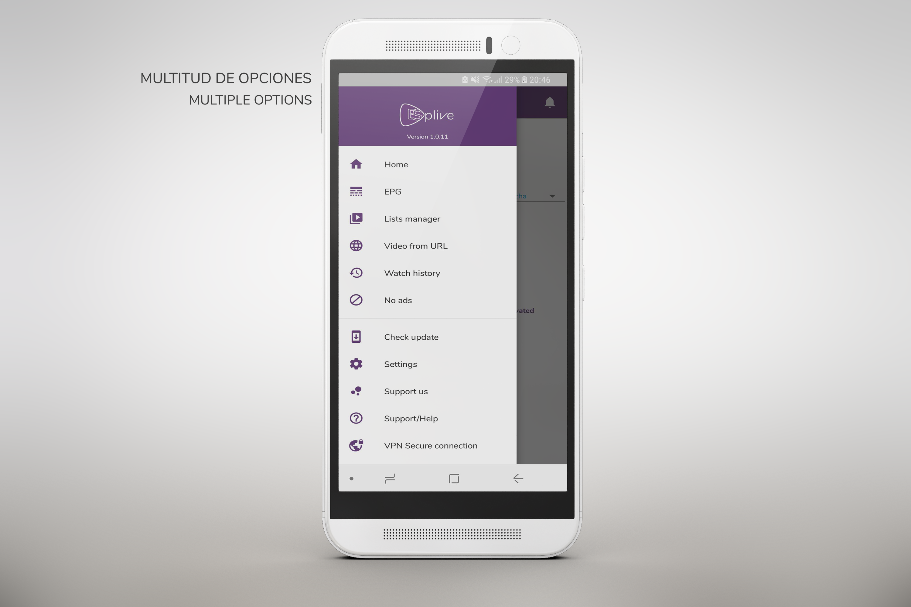 ESplive Player IPTV es un reproductor multimedia gratuito y multiplataforma, compatible con multitud de formatos de vídeo y listas de reproducción. Es posible castear contenido desde un dispositivo móvil a una TV Chromecast siempre que el formato de vídeo sea soportado. Los iconos aparecerán automáticamente cuando se encuentren dispositivos compatibles en la misma red. CARACTERÍSTICAS ○ Reproducir Vídeos. Soporta la mayoría de vídeos. ○ Listas de Vídeos. Puedes cargar listas de vídeo en formato w3u y m3u directamente desde fichero, a través de enlaces o escaneando códigos QR. Descubre mucho más en el interior. IMPORTANTE La versión oficial de ESplive Player no incluye ni garantiza el acceso a ningún contenido. Eso quiere decir que tú mismo tienes que cargar tus propios vídeos. Las listas de reproducción que cargues en la app creadas por otros usuarios son responsabilidad exclusiva de sus autores y no tienen ninguna relación ni colaboran de ningún modo con ESplive Player. Nunca utilices esta app para reproducir contenido ilegal o protegido por derechos de autor si no tienes los permisos para ello. El equipo de ESplive Player no se responsabiliza del mal uso que se haga de la aplicación por parte de los usuarios. Si tus vídeos solo reproducen audio y no se muestra imagen por favor “Desactiva aceleración HW” a través de preferencias. ACEPTACIÓN DE USO - ESplive Player no incluye ni distribuye ningún contenido multimedia. - El usuario debe aportar su propio contenido para ser reproducido. - ESplive Player no tiene ninguna relación ni colaboración con creadores de listas. - ESplive Player no apoya la reproducción de material protegido sin permiso del autor legítimo del mismo.