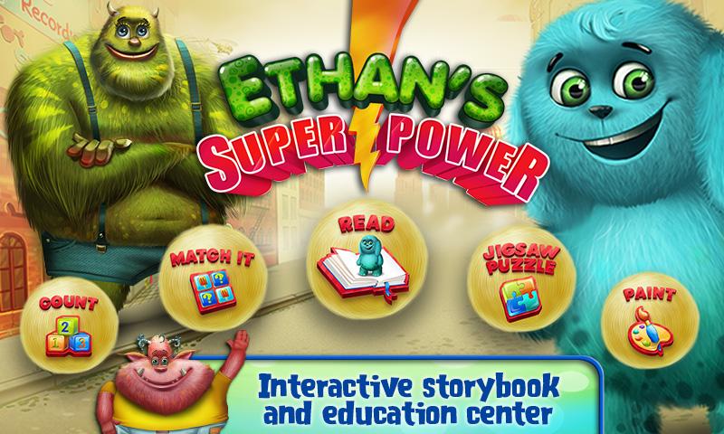 In this cool story with incredible graphics, dress up, and dozens of interactive elements, Ethan realizes his special superpower is that he can make things happen just by thinking super hard. He uses his special brain powers all over town from the store to the playground and discovers that his unique power is actually himself. This sweet story teaches kids the important values that everyone is special in his or her own way and if you believe in yourself, anything is possible.