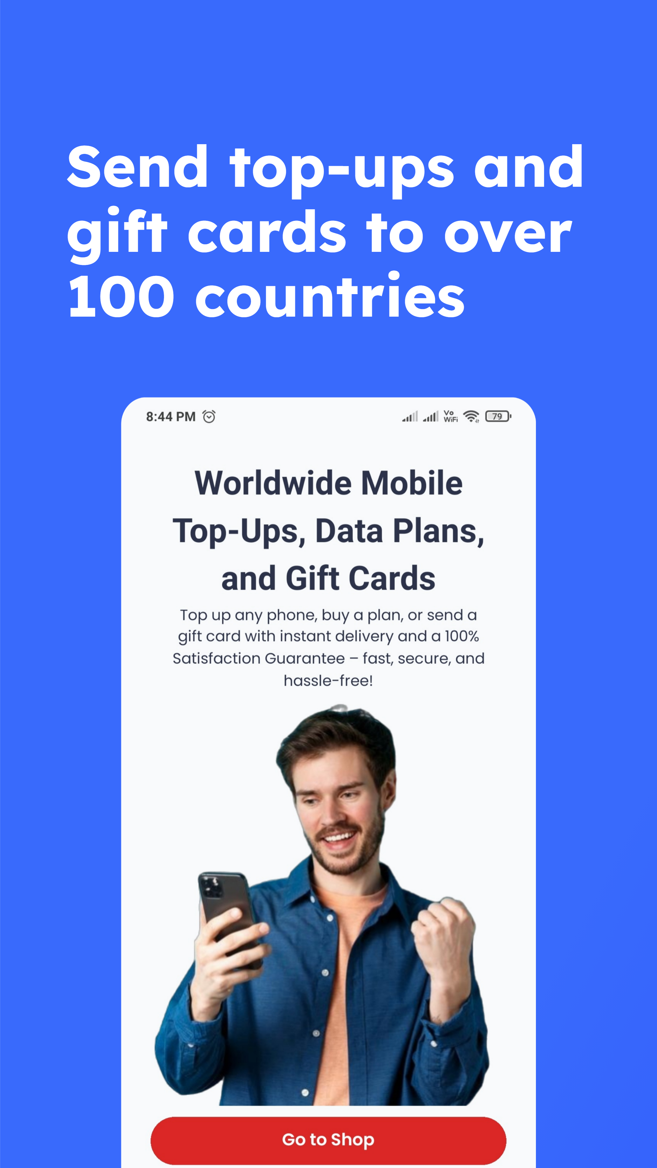 Mit der App können Sie Ihr eigenes Mobiltelefon aufladen oder Guthaben- und Datenaufladungen an Telefone von über 300 Mobilfunkanbietern auf der ganzen Welt senden. Es ist der beste Weg, um Ihr eigenes Telefon schnell aufzuladen oder Guthaben an Freunde und Familie überall auf der Welt zu senden.