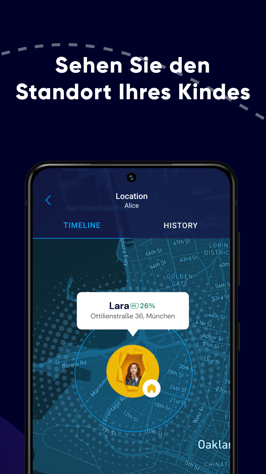- Zeigen Sie den Standort Ihres Kindes mit häufigen Updates an.