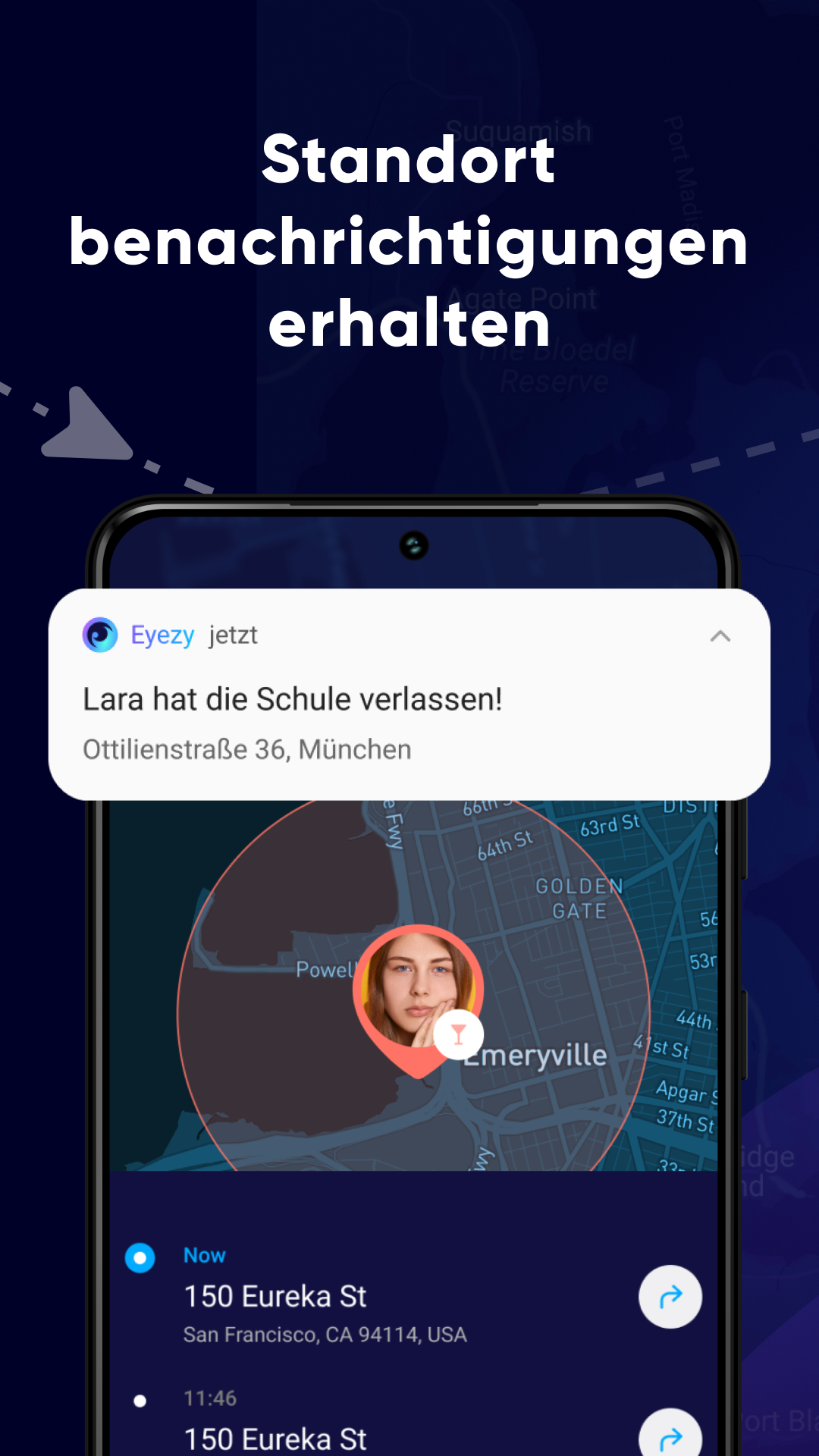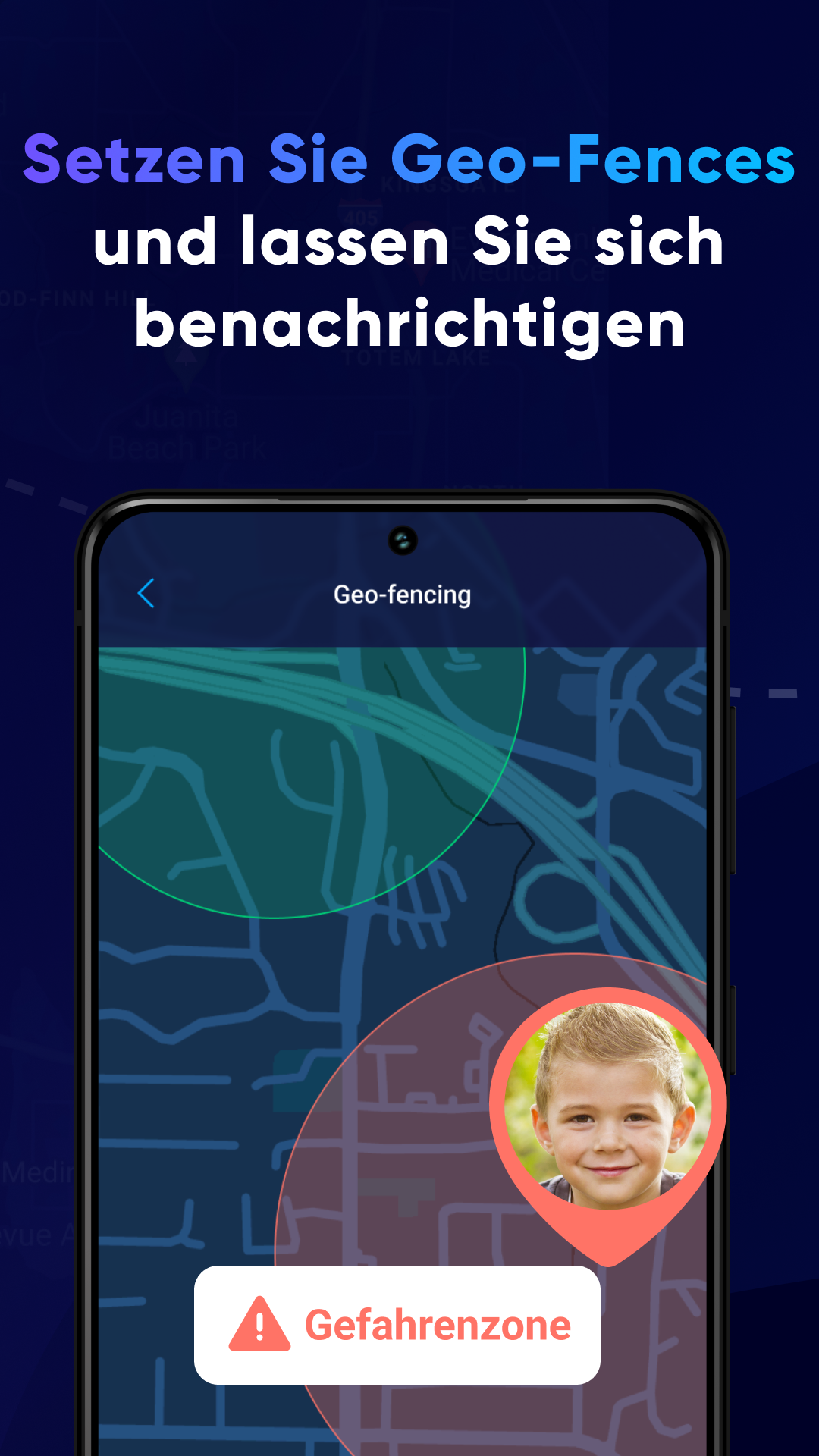 - Erhalten Sie Benachrichtigungen, wenn Ihr Kind einen bestimmten Ort betritt oder verlässt.