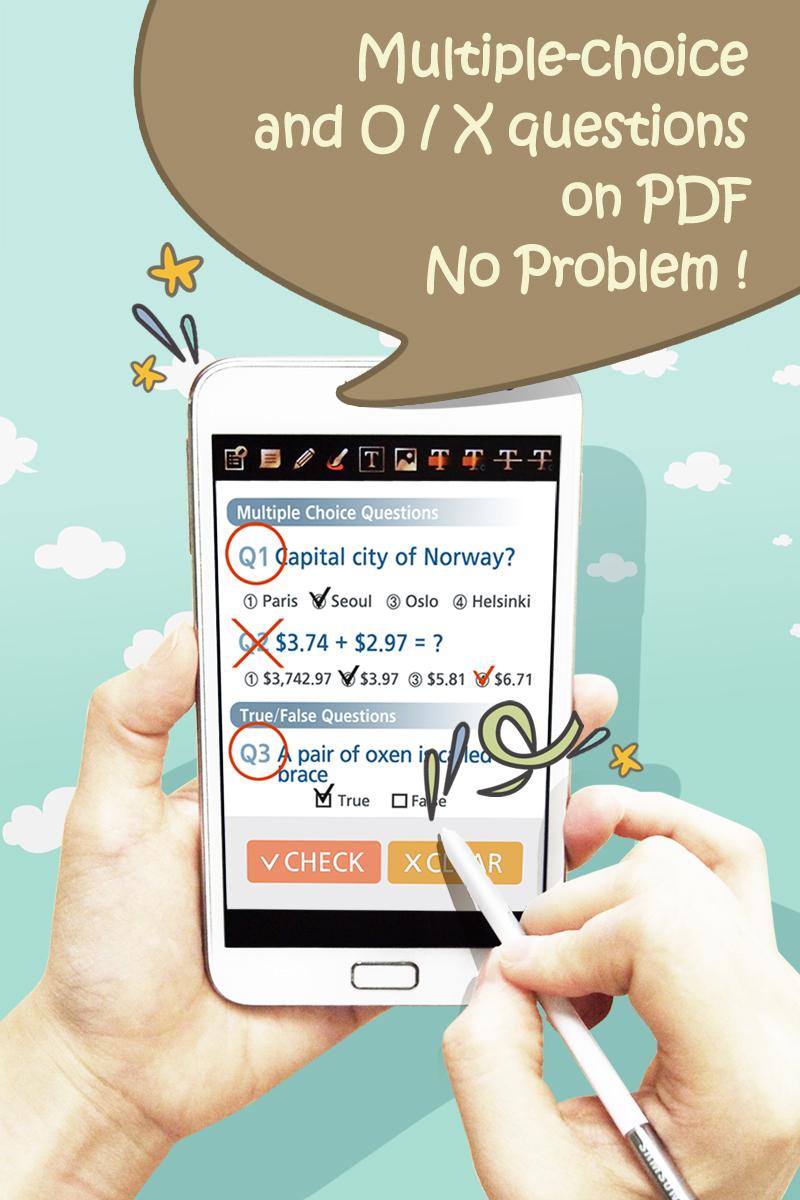 This is the full trial version of ezPDF CLEAR. (Check out for 15 days) For those countries where paid apps are not allowed, Use China Mobile MM for China For others, please contact Unidocs directly ♠ ♣ ♦ ♥ ♠ ♣ ♦ ♥ ♠ ♣ ♦ ♥ ♠ ♣ ♦ ♥ ♠ ♣ ♦ ♥ ♠ ♣ ♦ ♥ ♠ ♣ ♦ ♥ ♠ ♣ ♦ ♥ ♠ ♣ ♦ ♥ ezPDF CLEAR is the world's first innovative PDF content strategy for the digital textbooks, worksheets, workbooks, and tests & quizzes all combined. It's a PDF reader. It's a PDF viewer. No~ It's the Interactive PDF Quiz and Test Player! ezPDF CLEAR is an acronym for "Connected Learning Easy As Read, Respond, and Repeat." It provides a pleasant reading experience with PDF documents. Combining with touch and/or pen technology, reading is no longer limited as a book replacement. It creates a new way of productivity tools for users to act under work or study environments on their devices - marking, writing, typing, drawing, and adding images. However, ezPDF CLEAR now adds additional new experience - Interactivity! The World's first introduction of PDF-based educational tool and test and quiz taking mobile application. Mimicking Books and notes are now face of the past. Learning should be more fun and responsive to attract the users' attention. Our new approach brings a passive PDF becomes live in action. Our authoring tool programs (currently available for PC only) can easily make the plain PDF files to video embedded books, audio embedded books, flash cards, OX, True/False, multiple choices, short answer, and matching lines quizzes and tests. ezPDF CLEAR magically turns these contents to live interactively on mobile devices. Hope our app helps you to CLEAR your learning and training obstacles. ● FEATURES - Supports Samsung S Pen Technology - Read PDF and ePub files - Listen and watch embedded audio and video in PDF - Play animated GIF - Slideshow with Zipped images - Highlight, underline on PDF text - Write, draw, type, and add images on PDF - Fill-out PDF form - Take a quiz and test in PDF, and check answers within the same PDF for self-learning practice - Supported Languages : Chinese, English, French, Japanese, Korean, Spanish, Thai, Turkish ● STUDY TOOL - Interactive Flash Card Player ● SUPPORTED TEST TYPES - Multiple Choice - Multiple Answers - True / False - Fill in the Blank - Fill in the Multiple Blanks (no order) - Fill in the Multiple Blanks (in order) - Short Answer - Matching (Connecting) ● Brief Summary Download : http://bit.ly/WvZghn Please leave your comments, reviews, bug reports, suggestions, volume sales, and other business inquiries to android(at)unidocs.com twitter.com/ezpdf facebook.com/ezpdf ● Other Apps 1. "Cup PDF" - PDF Clipping PDF & Share 2. "ezPDF Reader" - The best selling PDF app for Android ♥ SPECIAL OFFER ♥ ezPDF Test Maker (PC Program) is FREE for now - Add hyperlinks and embed audio/video files - Add Animated GIF files - Add Zipped image files for animation or slideshow - Attach files to PDF - Create interactive boxes to hide and show the contents underneath - Create tests and quizzes Download PC Program : http://www.unidocs.com/products/ezPDFTestMaker.zip Redeem Code : bd11729f02 YouTube : http://www.youtube.com/watch?v=oMyjQXa0fFk User Guide : http://bit.ly/18ziwq7