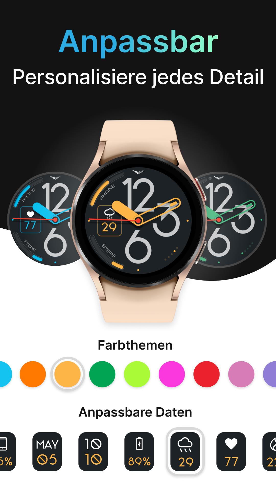 *Unterstützt Wear OS 3, 4 & 6 – Apple Watch – weitere folgen. Wechsel deine Uhr und deine Zifferblätter wechseln mit!