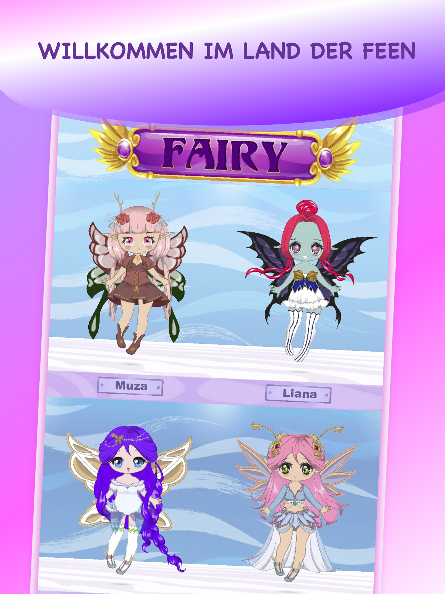 Jedes Mädchen liebt es, ihre Fee zu haben, also bieten wir Ihnen die attraktivsten Bilder der Märchenprinzessin durch dieses Anziehspiel an. Es ist die magische App und voller Natur, Glitzer, Glanz und Magie.
