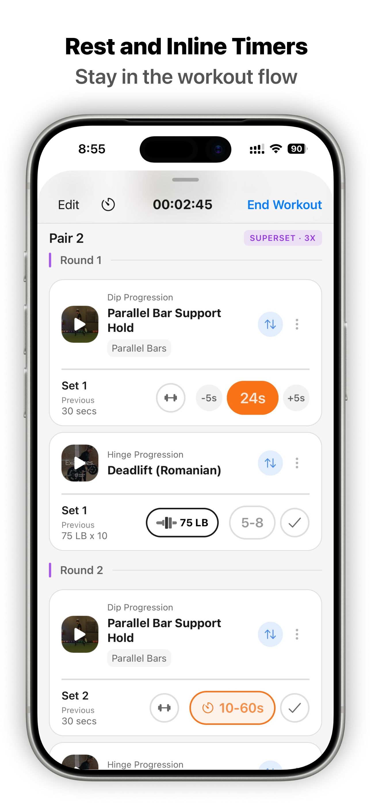 • Satz-Tracking mit einem Tipp + Pausentimer