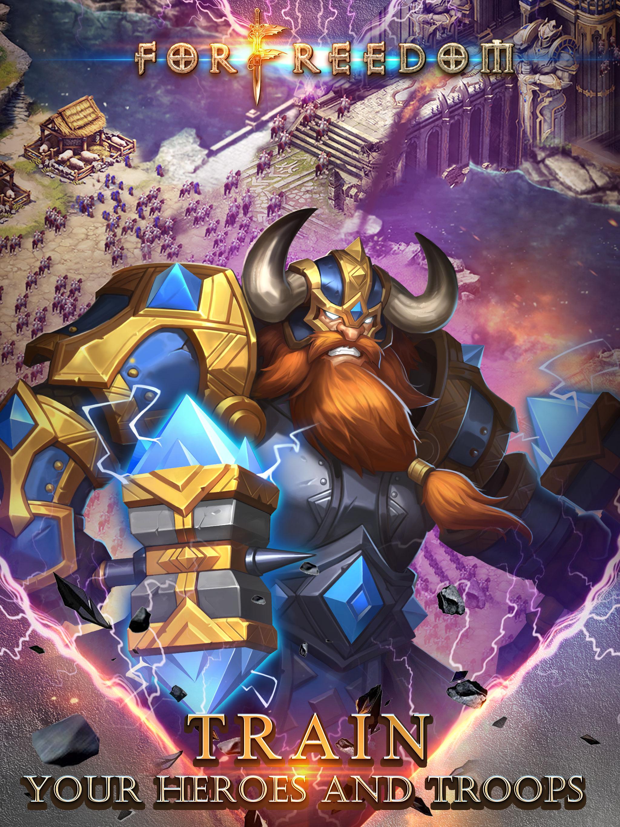For Freedom, a 2016 fantasy-themed strategy war game, is now LIVE! Build a city and recruit four races of Humans, Orcs, Elves and The Darkness. Launch an attack or retreat at your will. You can control every single unit like you navigate in Google Map. Become a mighty dragon lord and control dragon knights, or be wiped out by the cursed dragons. It’s all up to you! An epic war in an immersive world The war has been going on for ten thousand years in the For Freedom universe. The ancient dragon ten thousand years ago and the invasion of the cursed legion now. The four races have to bury the hatchet and fight alongside each other against the invaders of their land! However, Elves are wiped out immediately after the outbreak of the war. The world is being corrupted by darkness. You are given a magic fortress that keeps your from the dark force. Would you like to lead the four races to victory and save this world from all this chaos? Four races offer endless possibilities of unit combination You can recruit units of Humans, Orcs, Elves and The Darkness in your city, with signature buildings from all the four races providing different city functions. There are more than 16 types of buildings and over 20 distinctive units that have either advantage or disadvantage over each other. You can build your own army in a lot of ways, making it possible for you to defeat your enemy even if you are outnumbered. Strategy plays a crucial role in For Freedom. A bigger world map, the bigger picture The most intuitive world map ever. Zoom out to look observe the whole world and zoom in to focus on every single battle. There is no dead angle for you. Be ready for enemy’s ambush and allies’ call for help. You can choose either to attack or retreat at any time! Greatest satisfaction for your desire for war Let your power speak! Get new technology and train your army. Advanced units offer much more power in your quest for glory! Fight to kill monsters in the wild, plunder resources, conquer rival alliances! There are kingdom wars, cross-server wars and world boss fight! You can even wage a server-wide war that involves thousands of players from all over the world! Amazing missions and official events Daily quest, Newbie quest, Recommended quest, Random quest. The difficulty varies but the rewards are all amazing! Rare items will appear randomly after you complete quests. You have to put the quest system to good use if you want to turn the tide. Official events open at regular intervals. They will keep you busy in the game for sure! New Kingdom war is live. The fourth race Elves are now at your command! Do you want to see Frost Wyrm, Tauren, Mage and Druid fight alongside each other? Download and play For Freedom, Fantasy-themed strategy war game of 2016!