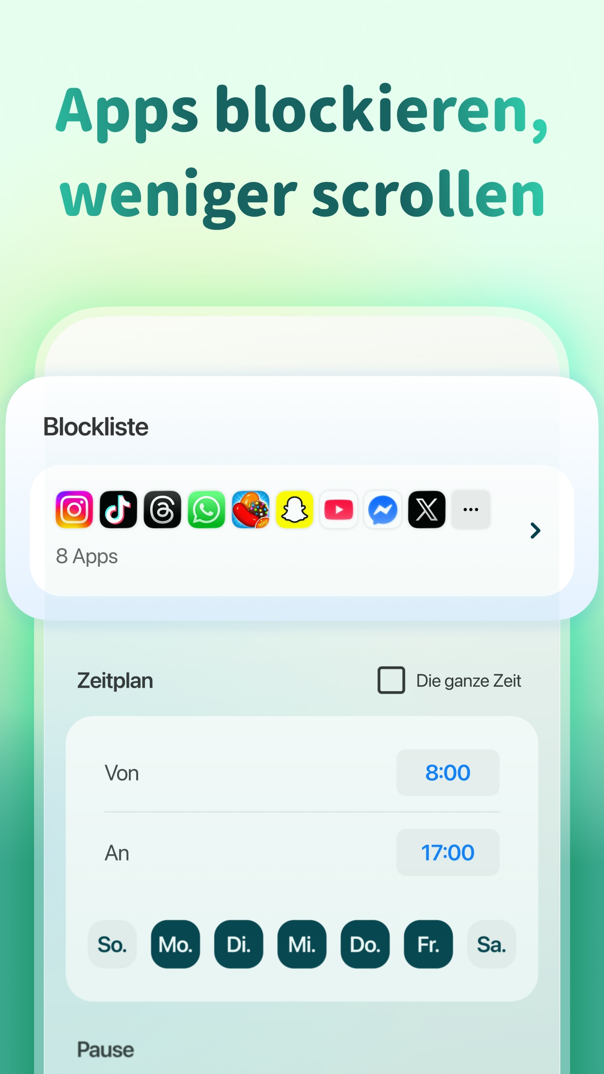 - Erstellen Sie personalisierte Liste zulassens für verschiedene Situationen. Nicht zugelassene Apps werden blockiert.