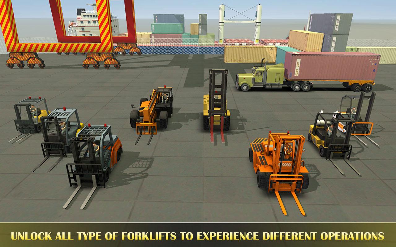 Forklift Simulator Pro ist die neueste Gabelstapler-Simulation. Bedienen Sie verschiedene Gabelstaplertypen und erfüllen Sie Hunderte verschiedener Missionen in unterschiedlichen Arbeitsbereichen wie Lager, Frachtschiff, Fabrik, Baustelle, Hafen und Containerterminal.
