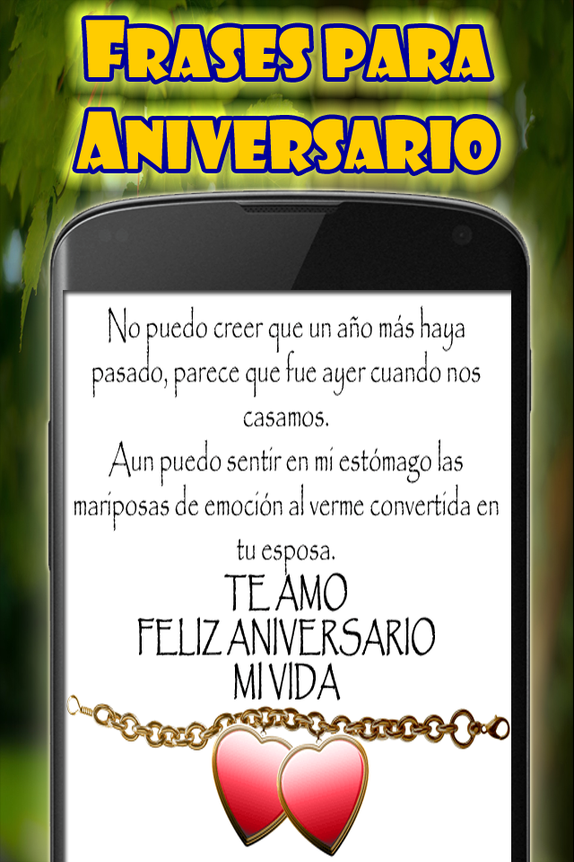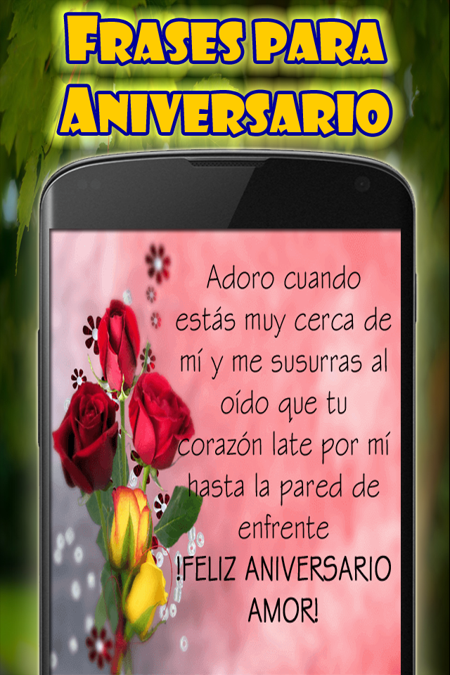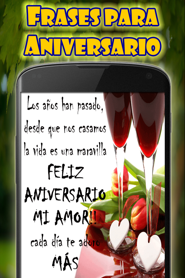 🎊 Frases de feliz aniversario mi amor de bodas 🎊 es una aplicación diseñada especialmente para aquellos momentos tan especiales que tenemos con nuestro esposo o esposa, siempre deben celebrar los años que llevan juntos en pareja, por eso hemos creado esta hermosa aplicación con bellas dedicatorias de boda. Hemos creado estas tarjetas de aniversario de matrimonio con la finalidad de que puedas enviar una felicitación de aniversario de bodas a tu espos@, también podrás enviarlas como postales de aniversario de bodas. Todas las parejas tenemos un dia especial para celebrar, saca tu lado mas romántico enviando estas frases de aniversario de bodas con imágenes. Siempre es importante recordar los aniversarios de boda imágenes, una simple frase de feliz aniversario mi amor 💑❤️, todas las frases estan hechas con mucho amor y también sirven para que recuerdes todo lo hermoso que has vivido al lado de la persona que amas y también hacer que esa persona sepa lo importante que es para tí ❤️, recuerden la felicidad que sintieron en el momento en que se casaron, por lo cual ahora estan jutnos por siempre. También hay 💑 Frases de aniversario de novios, porque los novios también festejan los años o meses que llevan juntos, no dudes en celebrar al lado del amor de tu vida ese día tan especial, como es el aniversario de haberse conocido, que esperas para descargar imágenes de aniversario, envía las frases de amor a tu novio o novia. No pierdas la oportunidad de dedicar un Te Amo a tu esposo 💑, celebren juntos su aniversario de matrimonio, el amor es maravilloso cuando se sabe cultivar ese sentimiento tan sublime, feliciten a su pareja en ese día especial para ambos. No esperes más y envía estas frases para dedicarle a tu novio, envía al amor que está lejos, descarga esta aplicación tan bella y hermosa en tu celular, dedica frases de amor enviando en forma de postales de aniversario de bodas. Celebra tu aniversario de casados, aniversario de bodas, aniversario de novios, aniversario de matrimonio, aniversario de enamorados con esta hermosa aplicación que tiene bellos lemas de amor.