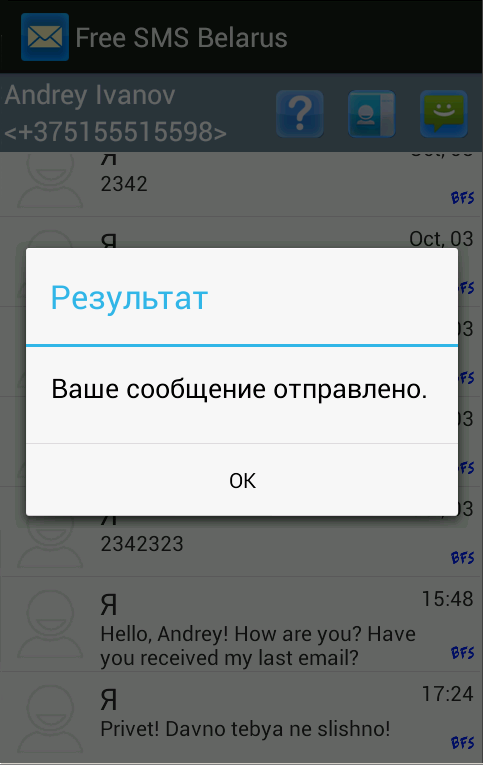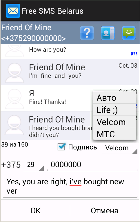 Send sms for free to any Belarus mobile operator right from your Android Phone!