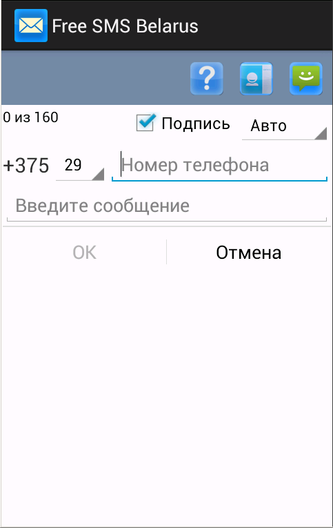 Free SMS Belarus is a free app, which has a user-friendly interface; it supports message sending to all Belarussian mobile operators. All supported features are listed below: