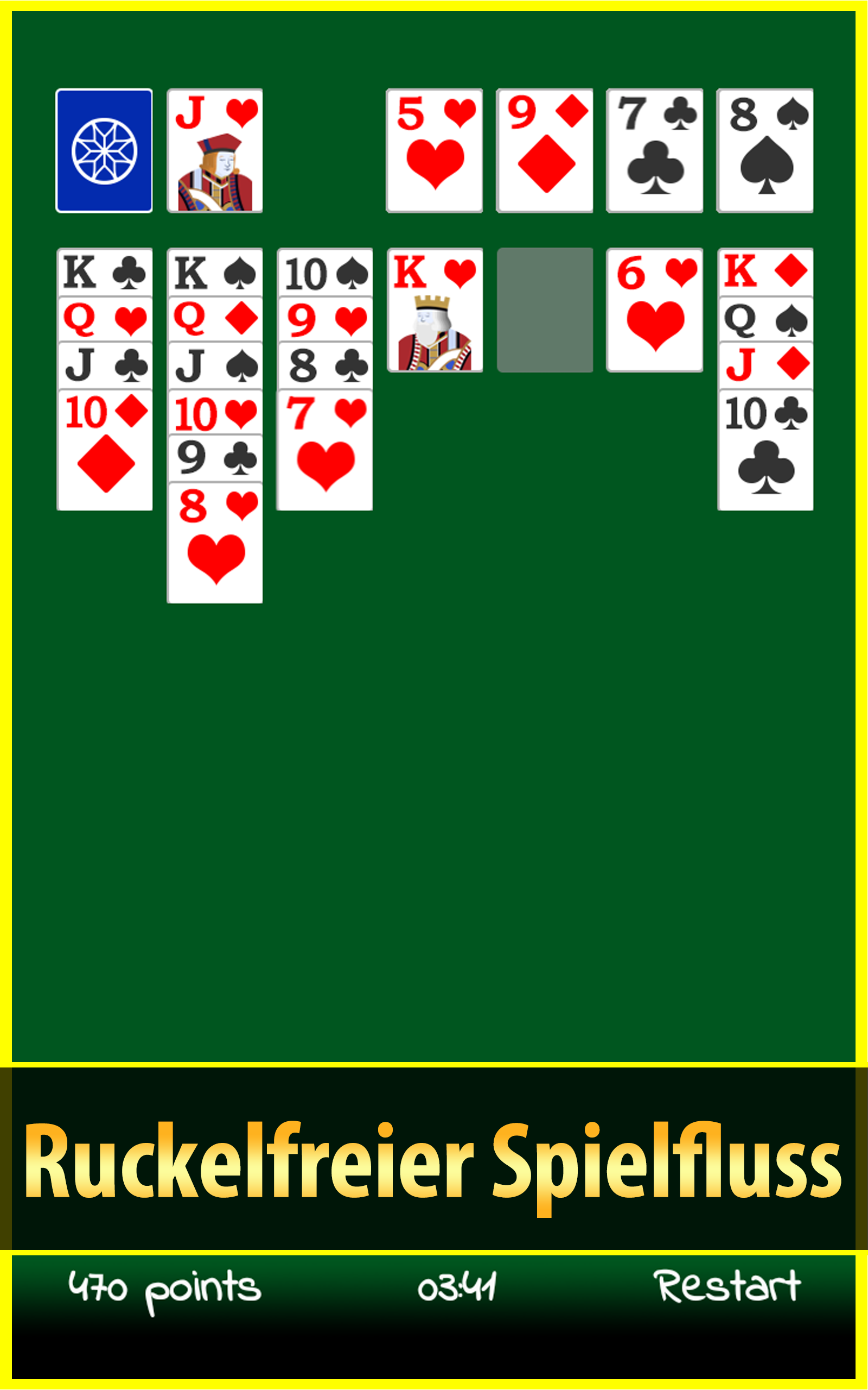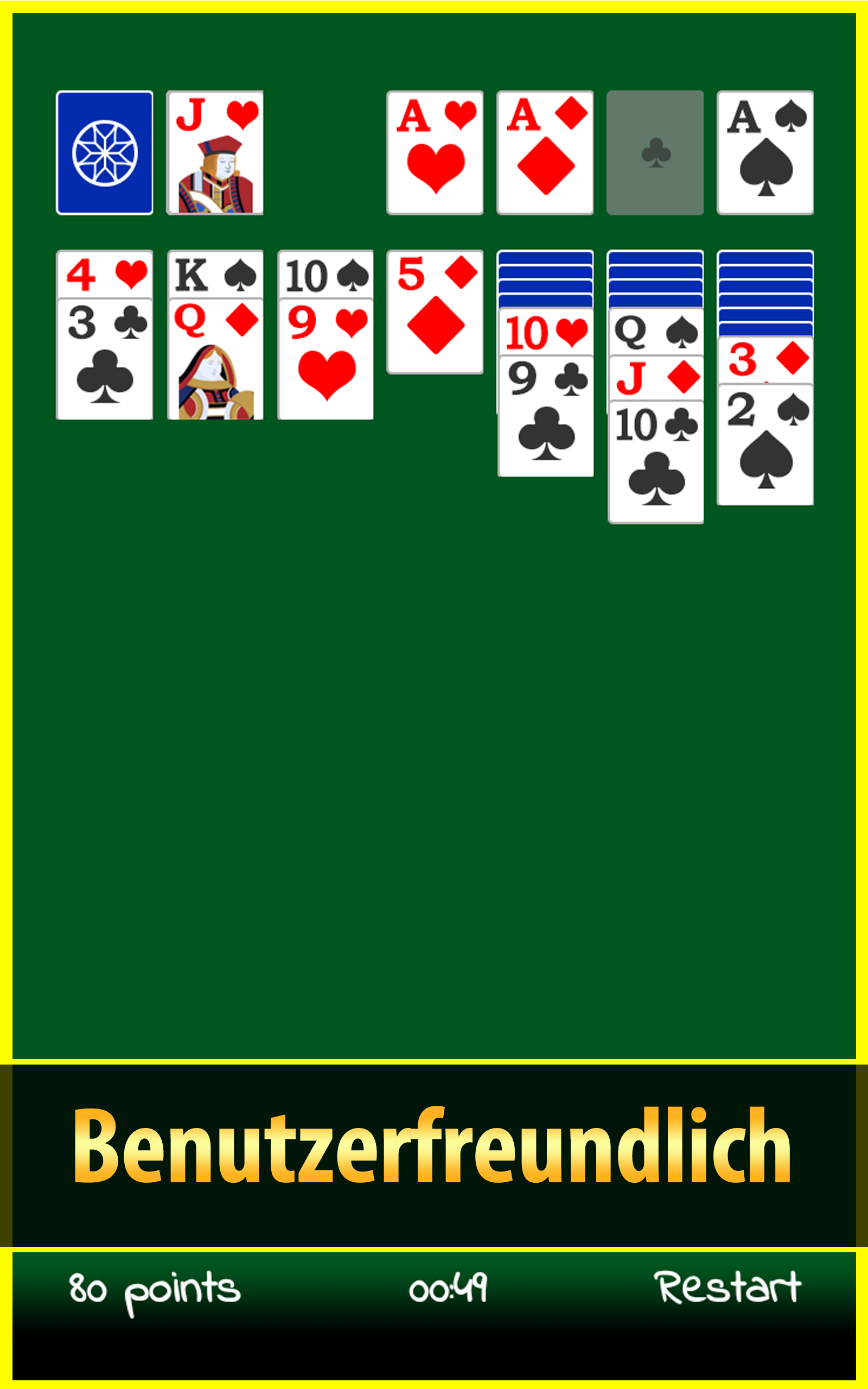 Du musst nichts weiter tun, als auf die Karte zu klicken und die Karten abwechselnd rot und schwarz und in absteigender Zahlenfolge anzuordnen. Sammle die Karten vom As bis zum König und räume das Spielfeld ab!