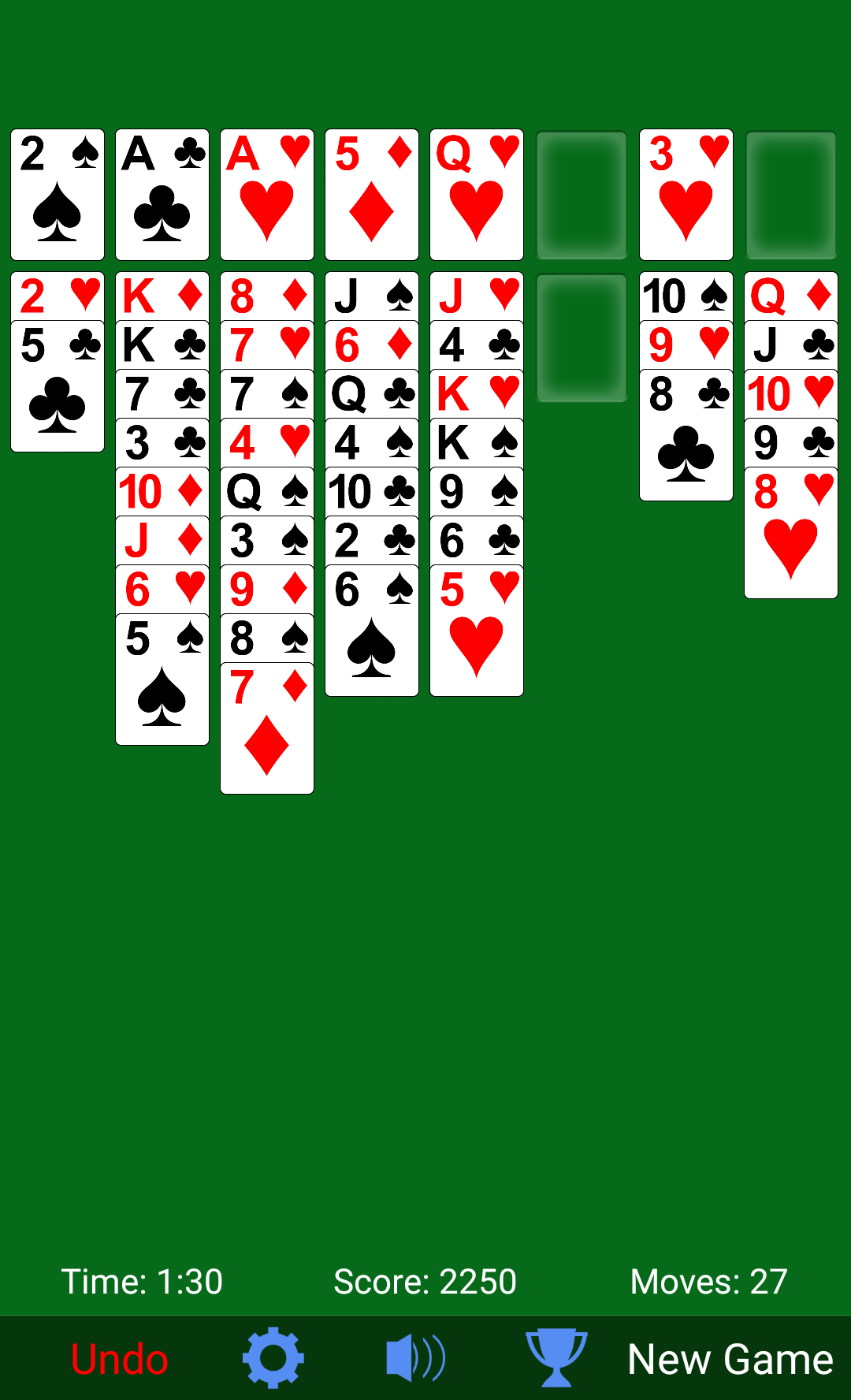 Das klare Design und die großen Karten machen das Spielen zum Kinderspiel. Diese Variante des klassischen Solitaires wird dich stundenlang unterhalten. Lade das Spiel jetzt kostenlos herunter und genieße die beste FreeCell-App überhaupt! FreeCell wird mit einem Standardkartenspiel mit 52 Karten gespielt. Ziel ist es, alle Karten auf die vier Ablagestapel (oben links) zu legen und die Kartenfarben von Ass bis König aufzubauen. Nutze die vier offenen Felder (oben rechts), um Karten zu speichern und zu gewinnen. Funktionen von FreeCell: • Unbegrenzte Gratisspiele • Rückgängig-Funktion • Tipp-Funktion • Spielstatistiken • Automatisches Verschieben ein-/ausschalten • Karten per Tippen verschieben oder per Drag & Drop verschieben • Bestenlisten und Erfolge • Ton ein-/ausschaltbar • Spielstatus gespeichert Die Nutzung dieser App unterliegt den Nutzungsbedingungen von Zynga (https://www.take2games.com/legal) https://www.take2games.com/privacy