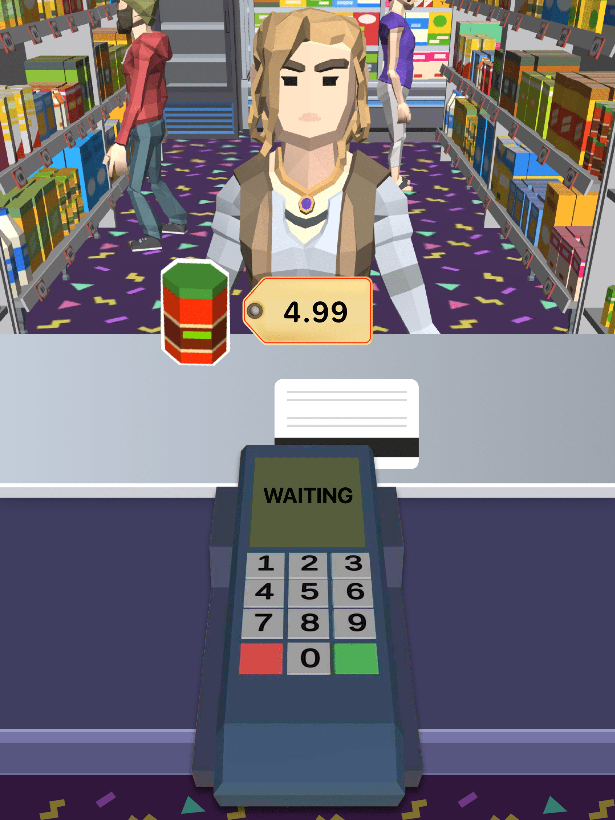 Steige ins Spiel ein und entdecke verschiedene Möglichkeiten, mit der Kasse zu arbeiten, Kunden beim Einkaufen zu helfen, deine Artikel aufzubewahren, deinen Shop zu verbessern und vieles mehr! In diesem fantastischen 3D-Kassiererspiel kannst du mit Barcode-Scangeräten, Waagen, Belegdruckern, dem Umgang mit Kreditkarten und anderen coolen Dingen spielen!