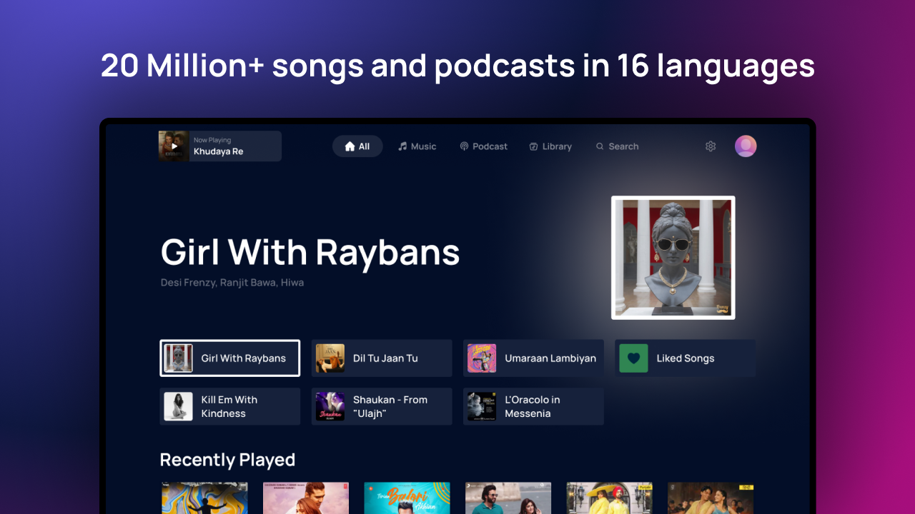 * Regionale Musikfreuden: Entdecken Sie eine vielfältige Auswahl an regionaler indischer Musik, darunter Tamil, Telugu, Marathi, Kannada und mehr.