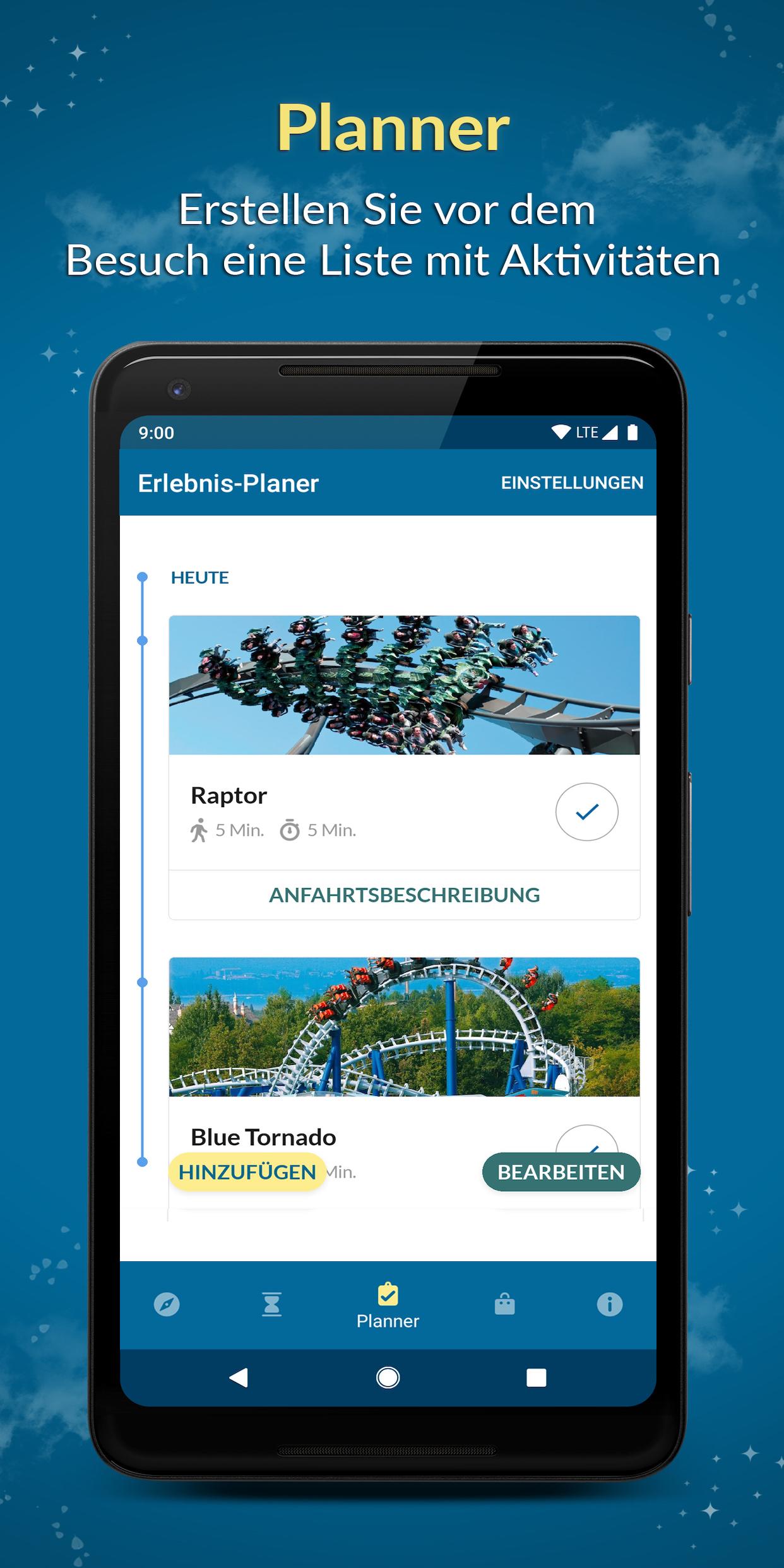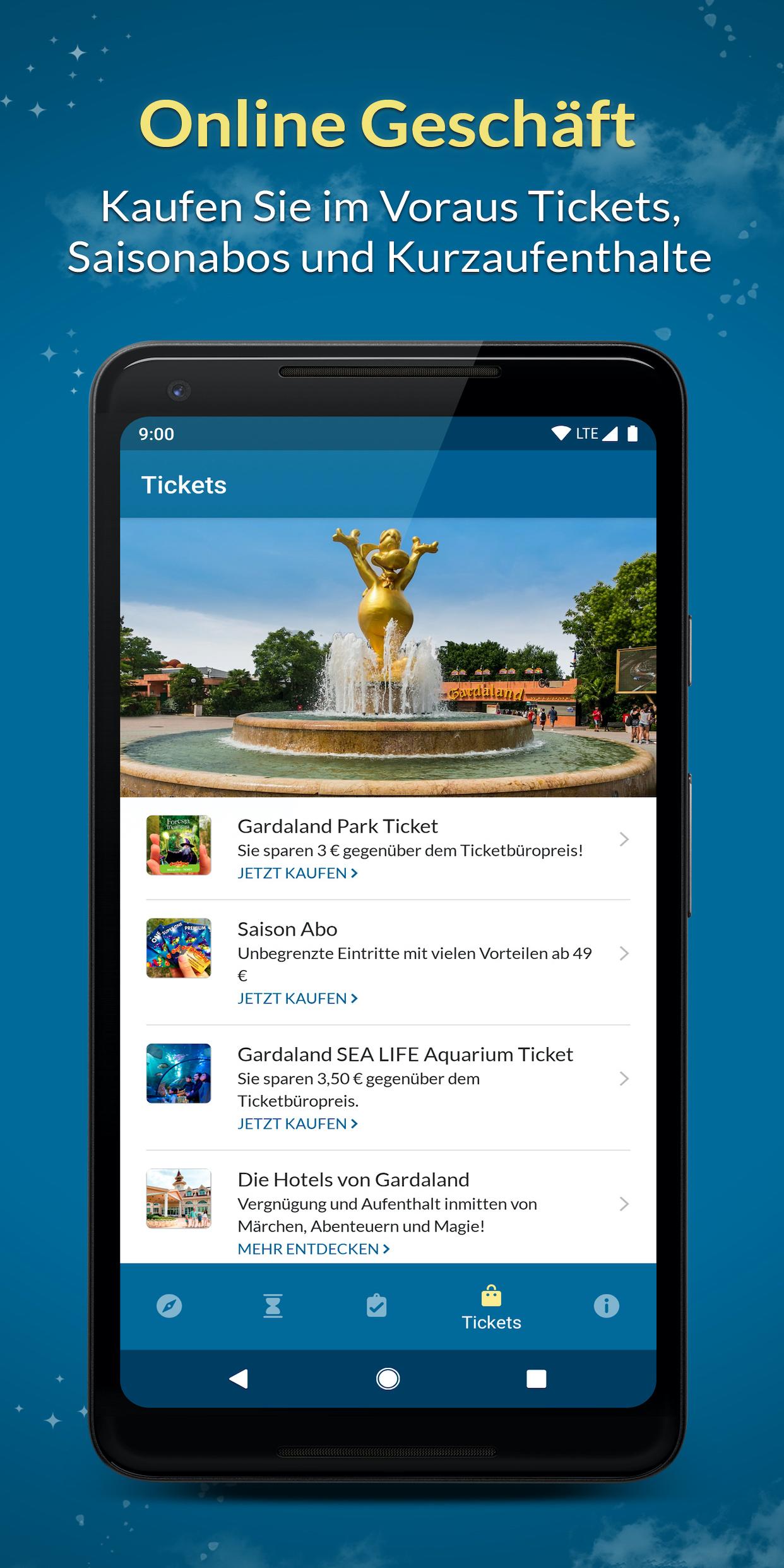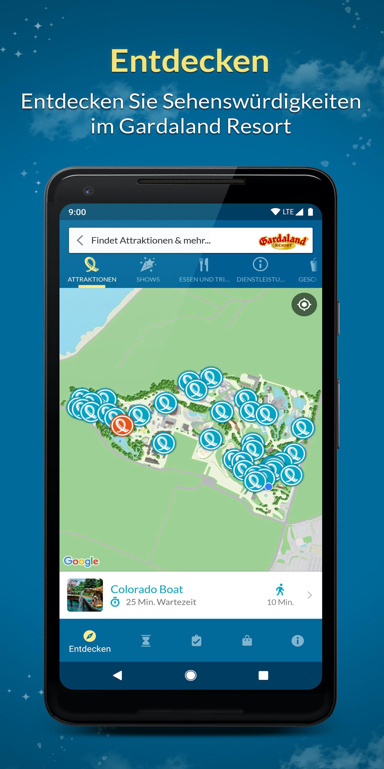 Die Magie von Gardaland Resort in Ihren Händen in einer brandneuen Version. Benutzen Sie die App, um: - euren Besuch zu plannen: mit dem neuen Erlebnis-Planer sehen Sie, welche Fahrgeschäfte für Sie am besten geeignet sind - alle Sehenswürdigkeiten (Attraktionen, Restaurants, Geschäfte und Shows) zu erfahren - die Echtzeit-Wartezeiten bei den Attraktionen zu erfahren - mit Interaktiver Karte, Attraktionen, Restaurants, Geschäfte und Shows zu erreichen - den Showplan immer dabei zu haben und vor Beginn der Show eine Benachrichtigung zu erhalten - Geld mit Exclusiven Angeboten zu sparen - Tickets und Abonnements zu kaufen und Kurzaufenthalte zu buchen - Alle nützlichen Informationen (Öffnungszeiten und Dienstleistungen) zur Verfügung zu haben