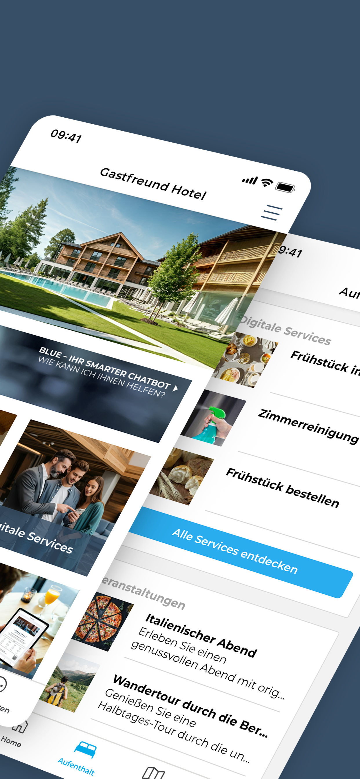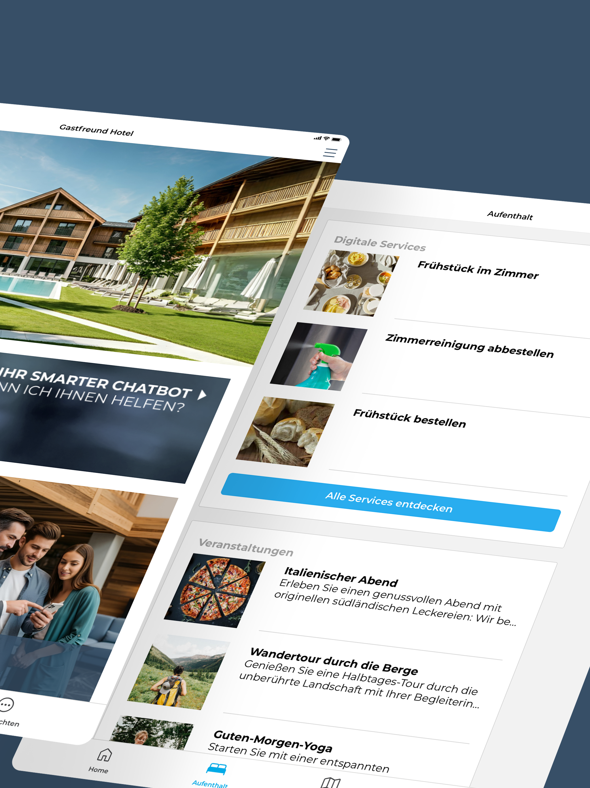 Informiere dich jederzeit in der digitalen Gästemappe Deiner Unterkunft über Details zur An- und Abreise, das Gäste A-Z, WLAN-Zugangsdaten, Speisekarten, Empfehlungen und vieles mehr. Buche direkt über Dein Smartphone oder Tablet die Angebote und Services Deines Gastgebers wie zum Beispiel Wellnessanwendungen, Brötchenservice, Zimmerservice oder Fahrradverleih.