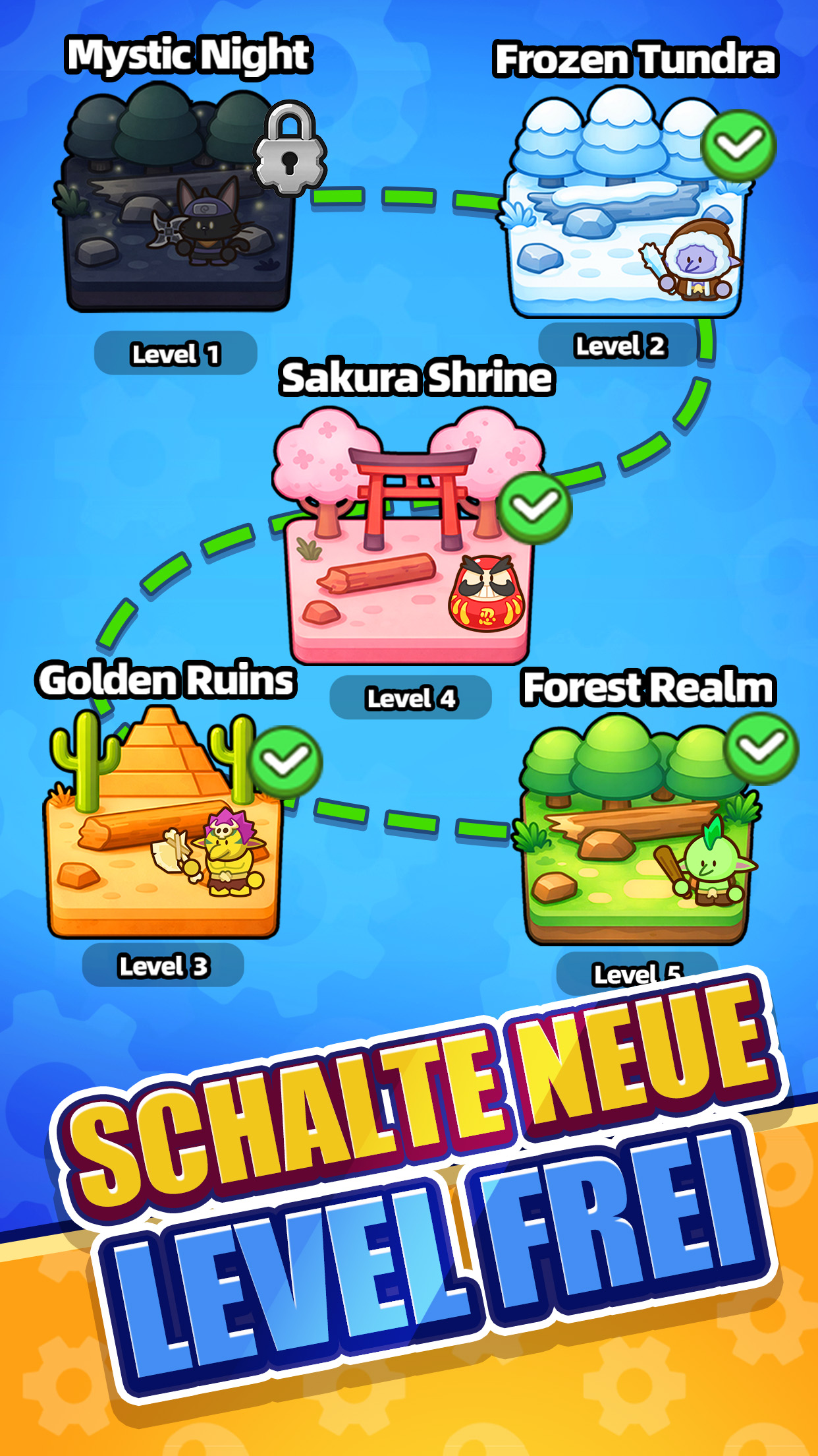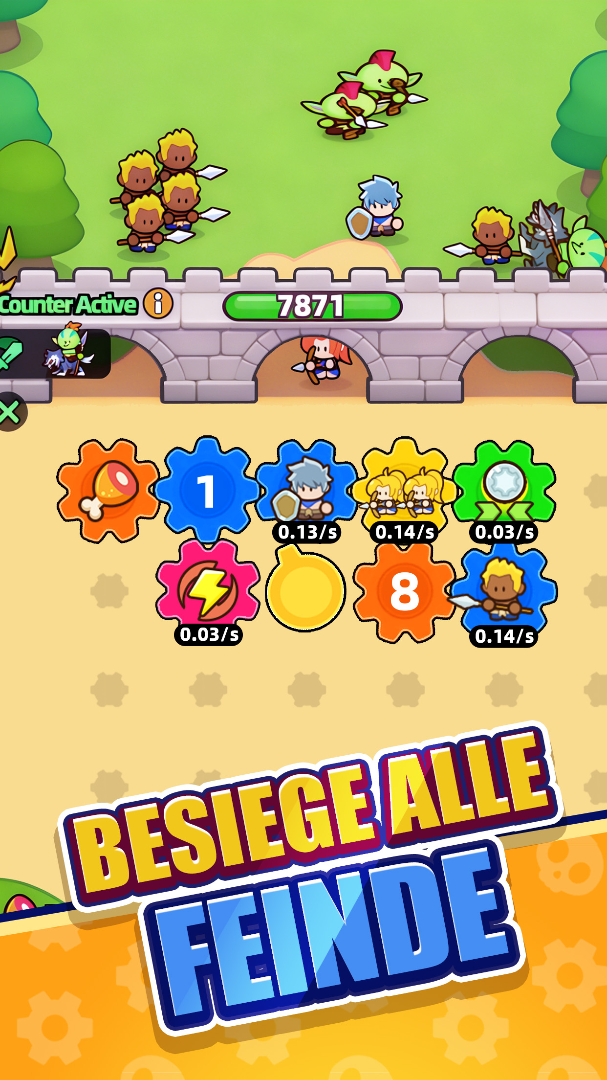 Gear Defenders – Ein revolutionäres Platzierungs-Abenteuer: Errichte deine taktische Festung, Zahnrad für Zahnrad! Hast du genug von Strategiespielen, die endloses Grinden erfordern? Dann ist Gear Defenders genau das Richtige für dich – eine innovative Mischung aus „Sammeln im Leerlauf“ und „Strategie-Abenteuer“. Generiere mühelos mächtige Truppen mit wenigen Fingertipps und baue deine eigene Kriegsmaschine Block für Block zusammen. 【Baue deine Kriegsmaschine wie ein Puzzle】 Platziere Soldaten um den Energiekern und sieh zu, wie sie wie von Zauberhand kontinuierlich Kampfeinheiten erzeugen. Von der einfachen Infanterie bis hin zu Eliterittern ist jede Einheit ein „Zahnrad“ in deiner Festung. Ziehe sie per Drag & Drop und plane strategisch, um die ultimative Verteidigungslinie zu errichten! 【Schalte über 10 Truppentypen frei】 Im Laufe deines Abenteuers schaltest du über 10 einzigartige Soldatentypen frei: widerstandsfähige Infanterie, Fernkampf-Bogenschützen, Schildträger und sogar legendäre Magieritter … Jede Einheit verfügt über einzigartige Fähigkeiten und Verbesserungsmöglichkeiten. Steige auf, verbessere, entwickle deine Truppen weiter – verwandle gewöhnliche Einheiten in Elitetruppen und erlebe, wie die Macht deiner Festung wächst, um es mit immer stärkeren Gegnern aufzunehmen. 【Über 100 herausfordernde Level】 Über 100 sorgfältig gestaltete Level stellen dich kniffligen Feinden gegenüber: Goblins mit raffinierten Fallen, Mumien, die mit dunkler Magie verflucht sind, Yetis, die vor roher Gewalt nur so strotzen … Jede feindliche Fraktion verfügt über einzigartige Angriffsmuster, und die Schlachtfelder reichen von engen Schluchten bis hin zu weitläufigen Ebenen. Jede Truppenkombination kann dein Sieg sein. Egal, ob du ein Gelegenheitsspieler bist, der entspanntes Platzieren bevorzugt, oder ein Hardcore-Stratege, der von taktischer Tiefe besessen ist – Gear Defenders hat für jeden etwas zu bieten. Baue deine Kriegsmaschine mit einem Fingerwisch, erlebe, wie deine Streitkräfte von klein zu gewaltig wachsen, und stürze dich noch heute in dein ausrüstungsgetriebenes Abenteuer – jetzt herunterladen!