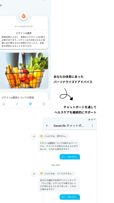 Die GeneLife 3.0-App ist für Benutzer gedacht, die Gentests für GeneLife-Serien unterzogen wurden. Die GeneLife-Serie ist ein genetisches Testkit, das zu Hause für verschiedene Zwecke verwendet werden kann, vom Krankheitsrisiko bis zur Konstitution wie Fettleibigkeitstyp und Hauttyp, Persönlichkeit und Wurzeln der Vorfahren. Die GeneLife 3.0 App führt Sie über die Ergebnisse von Gentests hinaus auf eine DNA-Reise, um zu wissen, wer Sie wirklich sind! Siehe GeneLife 3.0-Gentestergebnisse sowie personalisierte Ratschläge und Empfehlungen basierend auf den Ergebnissen. Darüber hinaus können Sie über die Coaching-Oberfläche die täglichen Ernährungs- und Trainingsaufzeichnungen anzeigen. Holen Sie sich ein reiches Leben mit einem gesunden Lebensstil, der zu Ihnen passt. Die App hat folgende Funktionen. - Zugang zu genetischen Testergebnissen - Kontinuierliche Informationsaktualisierungen, Chatbot- und KI-Ratschläge sowie Unterstützung zur Verbesserung der Gesundheit auf der Grundlage genetischer Testergebnisse -Unterstützt ein gesünderes Leben durch Verfolgung von Ernährung, Lebensstil und Schlaf - Bereitstellung verschiedener Informationen über Gene auf zeitliche Weise - Teilnahme an Fragebögen zu Gesundheit und Lebensstil - Darüber hinaus können Sie im Rahmen des GeneLife-Prämienprogramms Belohnungen und Angebote erhalten. Sie können Gene Life-Punkte verdienen, indem Sie Umfragen zu Gesundheit und Lebensstil sowie Fragen zu Umfragen beantworten. 【Hinweis】 ・ Diese App ist für diejenigen gedacht, die das Testkit der GeneLife-Serie gekauft haben (Zielprodukte: GeneLife Genesis 2.0 GeneLife Genesis 2.0, GeneLife DIET-Gentest für Fettleibigkeit, GeneLife SPORTS-Gentest für Sport, GeneLife SKIN für Hautalterung). * Nur diejenigen, die nach August 2017 einen selbstanalytischen Gentest für Myself 2.0 beantragt haben, können die Testergebnisse überprüfen. ・ Wer es nicht gekauft hat, kann es nicht benutzen. Die Gene Life-Serie kann nicht von Personen unter 18 Jahren erworben werden. Einige Testkits können jedoch mit Zustimmung der Eltern erworben werden. ・ Um die allgemeine Benutzererfahrung und die Empfehlungs-Engine zu verbessern, empfehlen wir, dass Sie bei Verwendung der GeneLife 3.0-App eine Verknüpfung mit der Google Fit-App für das Gesundheitswesen herstellen. Durch Verknüpfen können Sie Schritte, Fitnessmessungen, Energieverbrauch usw. in der GeneLife 3.0-App erfassen. Sie können weitere Informationen bereitstellen, indem Sie die Standortfunktion aktivieren. Bitte beachten Sie, dass einige Vorgänge möglicherweise nicht funktionieren, wenn sie nicht zusammenarbeiten.