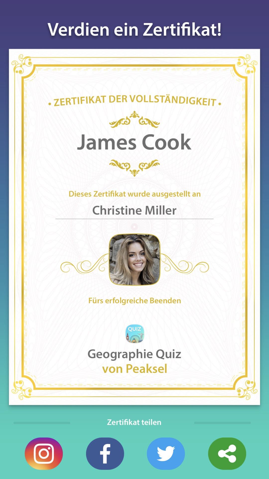 🌍 Wenn Sie gerne Fragen über Hauptstädte der Welt Quiz oder Flaggen der Welt beantworten, werden Sie dieses Erdkunde Quiz lieben. Geographie Quiz Spiel ist eine bemerkenswerte Sammlung von Geographie Quizfragen und Antworten in Verbindung mit Spaß Fakten, die Sie vielleicht noch nicht kannten. Mit diesem Erdkunde Quiz gehen Sie rund um den Globus und lernen viel mit Spaß an Geographie-Fakten. Wissen Sie, wer Hawaii entdeckt hat? Oder welcher See ist der salzhaltigste der Welt ist? Beantworten Sie diese Welt von Geographie Quiz Fragen und vieles mehr in diesem Geographie Quiz Spiel und genießen Sie es. Geographie kann nicht langweilig sein, wenn Sie Geographie Quiz Fragen beantworten. Downloaden Sie Geographie Quiz Spiel und finden Sie heraus, wie viel Sie über Hauptstädte der Welt und Länder wissen! 🌍 🌍 GEOGRAPHIE QUIZ - EIGENSCHAFTEN 🌍 - GEOGRAPHIE QUIZ IN 15 VERSCHIEDENEN SPRACHEN: Arabisch, Bulgarisch, Chinesisch, Kroatisch, Englisch, Französisch, Deutsch, Italienisch, Polnisch, Portugiesisch, Russisch, Serbisch, Spanisch, Türkisch und Thai - TIPPS - Wenn du auf eine bestimmte Frage keine Antwort weißt, kann der Hinweis von Hilfe sein oder du kannst - DIE FRAGE ÜBERSPRINGEN, ein Leben verlieren und zur nächsten Quizfrage wechseln - HERZEN SIND DEIN LEBEN, jede falsche Antwort bedeutet ein Herz weniger - BITTE EINEN FREUND UM HILFE, wenn du allen Hinweisen verwendet hast - ZERTIFIKAT - du bekommst es einmal, wenn du alle Quizfragen beantwortet hast Lustige Quiz im Allgemeinen sind eine gute Möglichkeit, eine tolle Zeit zu verbringen und etwas Neues zu lernen. Mit so vielen Quizfragen mit Antworten + witzigen Fakten für jeden von ihnen, ist dieses Geographie Quiz eine Nr. 1 unter den Apps. Mit der Möglichkeit, schnelle Quizfragen in verschiedenen Sprachen zu beantworten, ist dieses Geographie Quiz wesentlicher interessanter! So organisier dir das Geographie Quiz und genieße es, neue Fakten durch schnelle Quizfragen und Antworten zu erlernen! 🌍 RECHTLICHE HINWEISE 🌍 Bilder, die in Geographie Quiz verwendet werden, sind unter der Public Domain oder Creative Commons License geführt. Für weitere Informationen besuchen Sie bitte den About App Abschnitt innerhalb der App selbst. Geographie Quiz ist ein geistiges Eigentum von Quizzes by Peaksel.