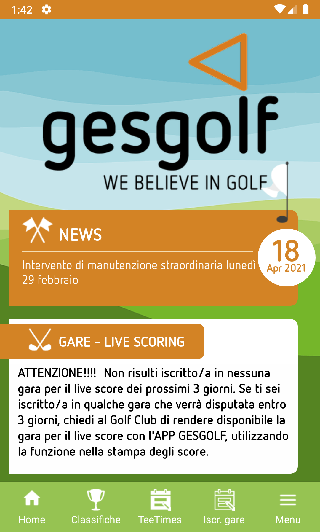 ACHTUNG: Dem Spieler, der die App herunterlädt, wird empfohlen, sich auf der Website www.gesgolf.it zu registrieren, falls er dies noch nicht getan hat, um ein breiteres Angebot an Dienstleistungen zu erhalten und sein Datenschutzprofil persönlich verwalten zu können. Der Erziehungsberechtigte des Kindes unter 16 Jahren muss sich zwingend auf der Website www.gesgolf.it registrieren, bevor dieser die Gesgolf App herunterlädt.