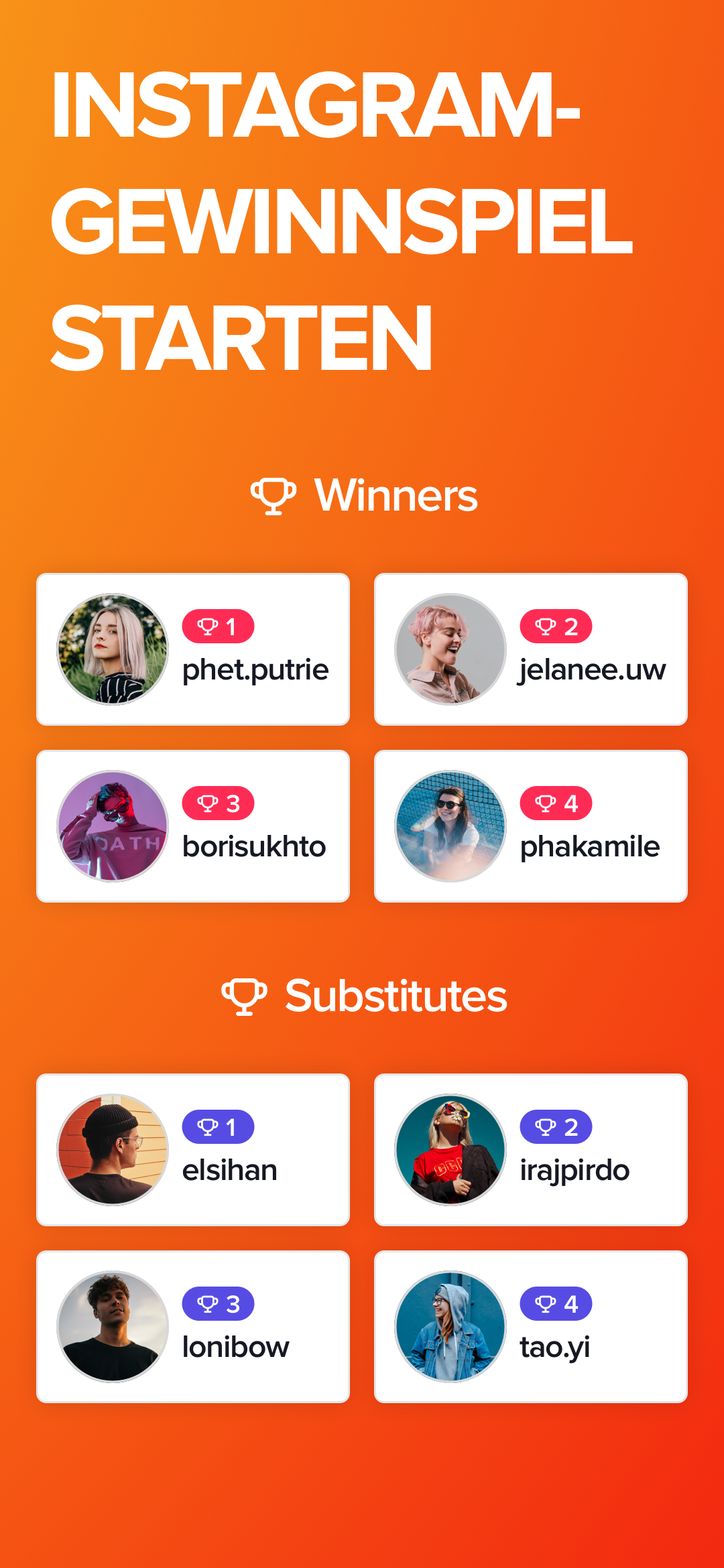 Perfekt für Influencer, Marken, Shops oder private Verlosungen!