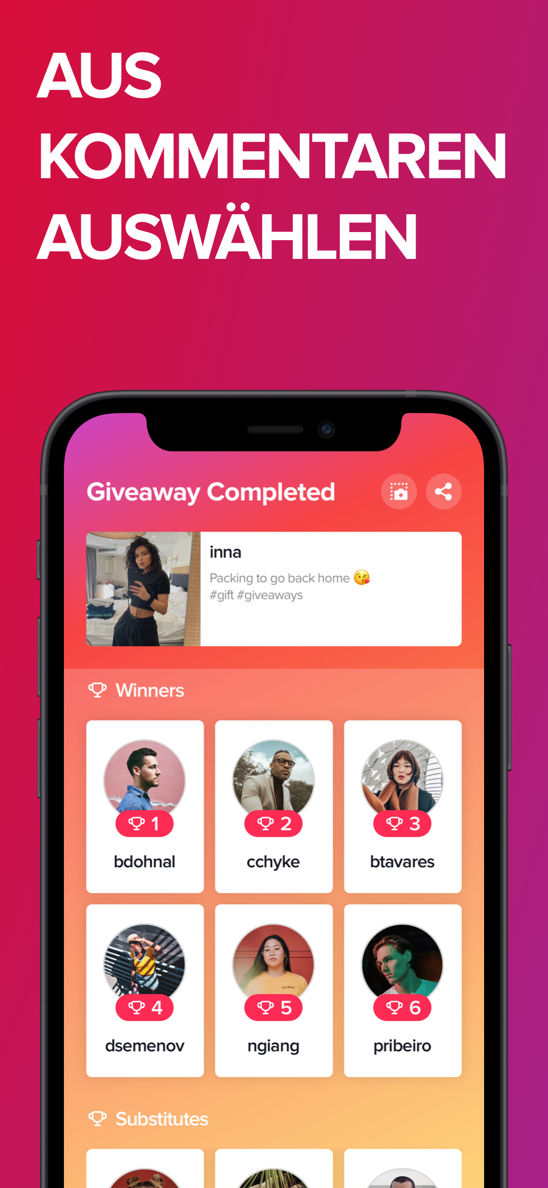 • Gewinner aus Kommentaren wählen