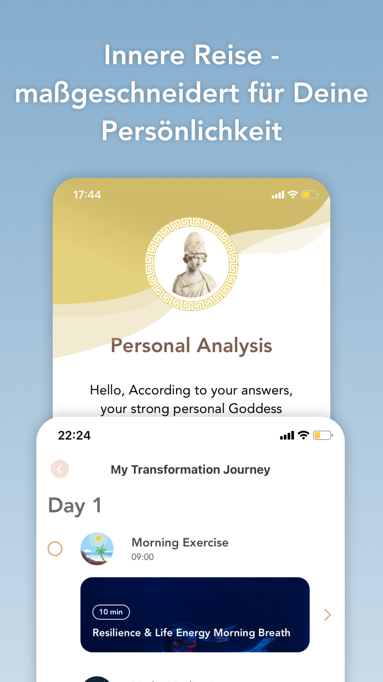 Die Goddess-App erstellt eine spezielle Reise zur Transformation des Wohlbefindens, die auf Ihren Archetypen der Göttin basiert und viele Praktiken des Wohlbefindens, des Wohlbefindens und der Achtsamkeit umfasst, z Übungen, tägliche weibliche Tipps und positive Affirmationen. Darüber hinaus erhalten Sie eine detaillierte Persönlichkeitsanalyse, Transformationsvorschläge und Tipps für Ihre Beziehungen.