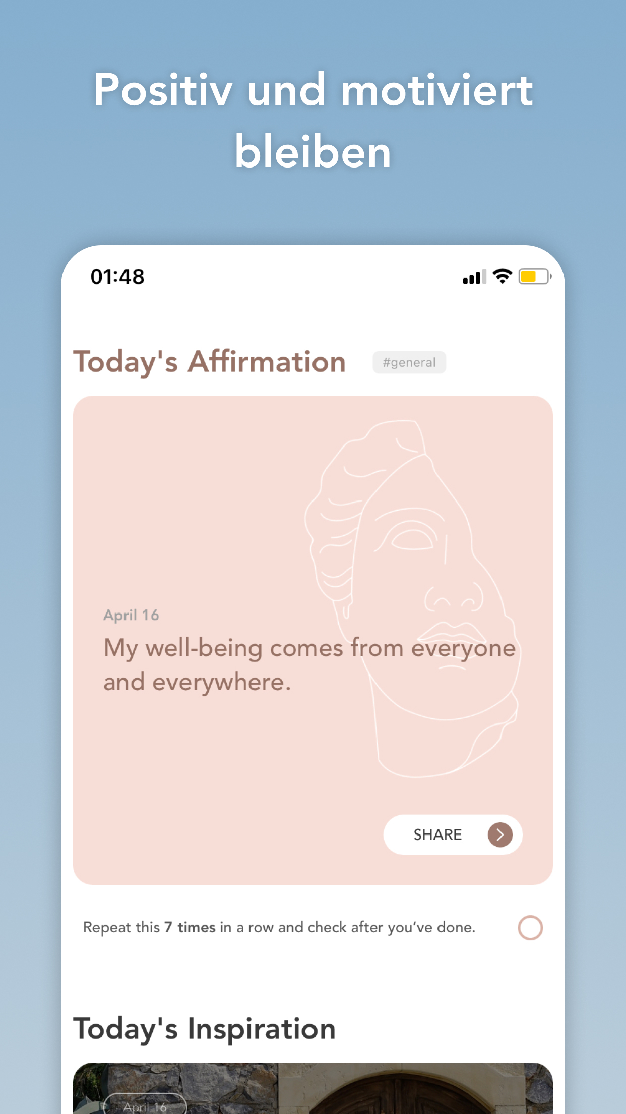 Die einzige App für psychische Gesundheit, die auf Ihre Persönlichkeit zugeschnitten ist. Weil wir alle einzigartig sind! Wir alle brauchen unsere einzigartige Reise zum Wohlbefinden und zur Transformation der Selbstliebe.