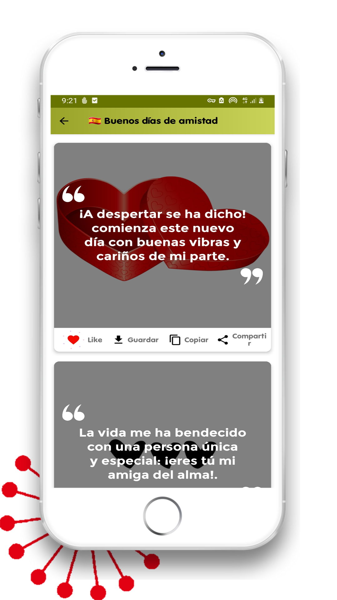 Hier können Sie viele Sätze entdecken, finden und genießen, um sie über Facebook, Tuenti, Twitter, WhatsApp, Line, Viber, Telegramm, WeeChat zu teilen und / oder an die gewünschte Person zu senden oder in Ihren bevorzugten sozialen Netzwerken zu teilen. Updates mit neuen Bildern, Fotos, Sätzen, Nachrichten und animierten Gifs in der Anwendung. Hier findest du für jeden Tag der Woche schöne Botschaften für deine Liebe, personalisiert, damit du an diesem Montag, Dienstag, Mittwoch oder an jedem anderen Tag der Woche sagst: Ich liebe dich, glücklicher Tag, ich vermisse dich, du bist der Beste mein Leben, wach auf, meine Liebe. Schönen guten Morgen Grüße, siehst du deinen Liebsten heute? Ist er weit weg? Schicke ihm eine schöne Postkarte aus unserer Sammlung. Guten Morgen Bilder mit Blumen, mit Bären, mit Herzen, mit Küssen, romantischen Sätzen, Liebeskomplimenten, Sätzen zum Erobern, Nachrichten zum Verlieben, Liebeserklärungen, romantischen Karten, Liebesworten, Sätzen für meinen Freund, Freundin, Ehemann , Frau, küssende Sätze. Sätze für jeden Tag der Woche, die ab der ersten Stunde des Morgens gesendet werden sollen, egal an welchem Tag oder Wochenende. In unserer Sammlung wählen Sie nur Ihre Karte aus und senden sie per WhatsApp, Instagram, Twitter oder Ihrem bevorzugten Netzwerk. Hier bringen wir diese schöne und neue Anwendung von Guten-Morgen-Liebesgrüßen, mit der Sie jeden Tag Nachrichten oder Postkarten mit guten Wünschen an die Liebe Ihres Lebens oder an die kleine Person, die Sie erobern möchten, weitergeben können. Montag, Dienstag, Mittwoch, Donnerstag, Freitag, Samstag, Sonntag finden Sie schöne romantische Sätze und viele Grüße. In Guten-Morgen-Sätzen finden Sie eine Vielzahl von Themen, die Sie für jeden Anlass kostenlos widmen können, sei es der Liebe, ich vermisse Sie, der Trauer, der Ermutigung, der Besinnung, des Segens, des Verliebens oder der guten Wünsche. Es sind wunderschöne Sätze mit einzigartigen Bildern, die das Ereignis darstellen und so können Sie diese Gefühle ausdrücken und fühlen, was Sie in diesem Moment fühlen.