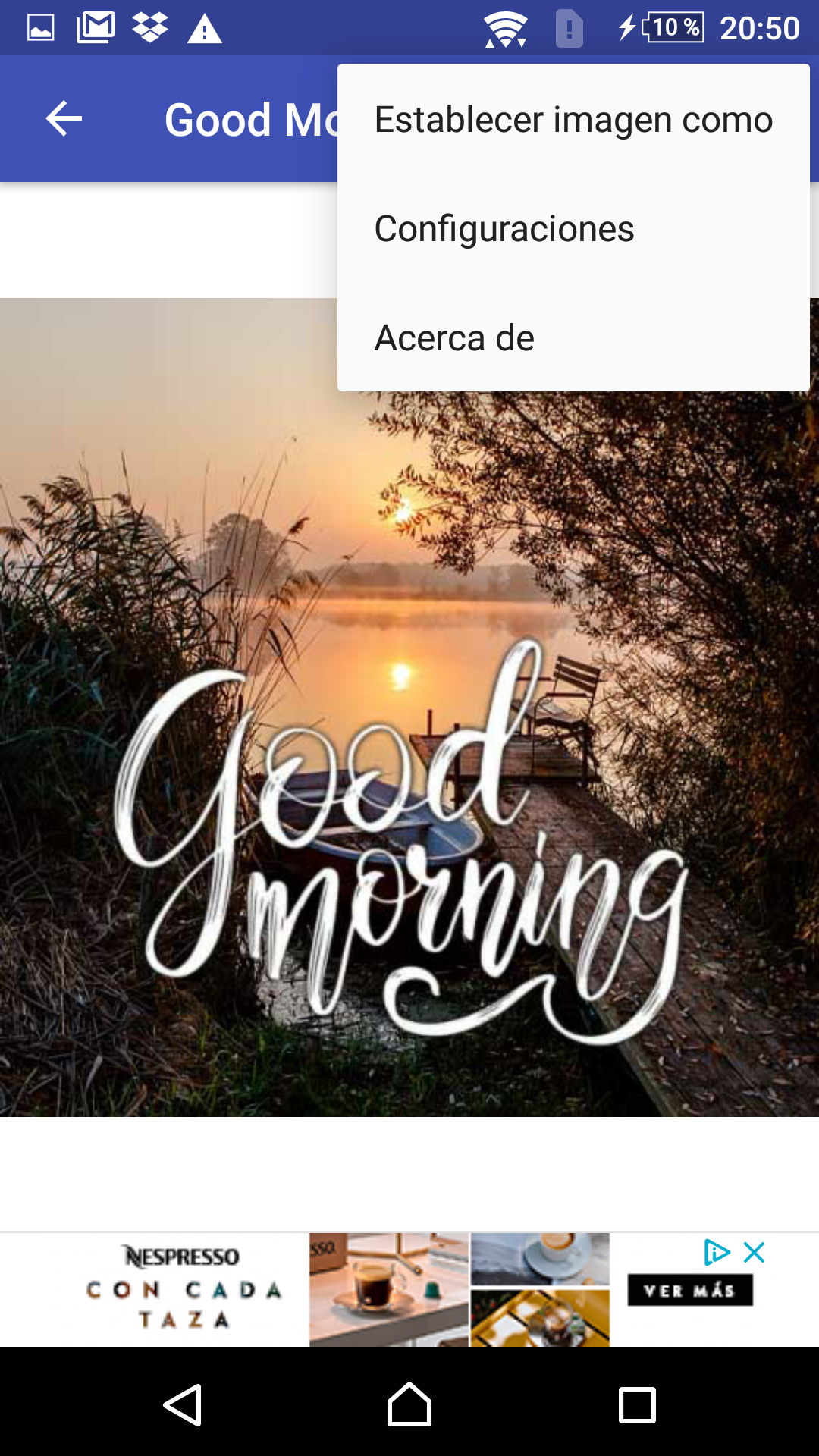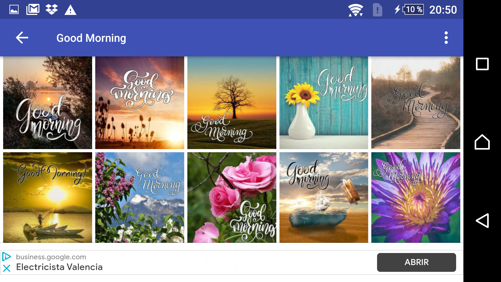 „HAPPY DAWN MORNING“ scheint eine Kombination aus Wörtern und Phrasen zu sein, die keinen zusammenhängenden englischen Ausdruck ergibt. „Morgendämmerung“ und „Morgen“ beziehen sich beide auf den frühen Teil des Tages, wenn die Sonne aufgeht, aber wenn man sie auf diese Weise kombiniert, entsteht kein normaler englischer Ausdruck. Wenn Sie zu Beginn des Tages gute Wünsche für einen schönen Morgen übermitteln möchten, können Sie einfach „Guten Morgen“ sagen. Dies ist eine übliche und angemessene Begrüßung, um jemandem zu Beginn des Tages alles Gute zu wünschen. Sie sind auf der Suche nach einer Bewerbung, mit der Sie Ihren Liebsten zu diesem Tag gratulieren können? Möchten Sie jemanden überraschen und den grauen Tag erhellen? Wenn ja, dann ist diese Anwendung genau das Richtige für Sie. „Guten Morgen“ ist eine Anwendung, mit der Sie Ihren Lieben einen schönen und wundervollen Tag wünschen können. Es ist die perfekte Möglichkeit, den Tag mit Energie und guter Laune zu beginnen. Es gibt nichts Schöneres, als sich über eine bessere Gesundheit zu freuen und jeden Tag voller Hoffnung zu leben. Mit diesen Postkarten können Sie Ihren Freunden und Ihrer Familie einen schönen Tag wünschen. Es handelt sich um eine kostenlose App mit einer großen Auswahl an Bildern und Glückwünschen zum Tag. Sie können es an jedem Wochentag verwenden. Wir haben exklusiv für Sie die schönsten und schönsten Bilder ausgewählt und erstellt. In unserer Anwendung finden Sie wunderschöne Postkarten. Sobald Sie unsere App herunterladen, werden sich Ihre Tage für immer verändern. Laden Sie diese Anwendung herunter und stellen Sie sicher, dass es das ist, was Sie suchen, denn mit dieser App können Sie Bilder zu jeder Tageszeit, in allen Ihren sozialen Netzwerken, mit all Ihren Freunden, mit Ihrer Familie teilen ... Die Bilder sind immer unterschiedlich und Sie können jeden Tag ein anderes Bild verwenden. Die Anwendung wird ständig aktualisiert, damit Sie neue Bilder genießen können. Offline-Inhalte, das heißt, Sie können die Inhalte ohne Internet und ohne Abdeckung nutzen. Die Anwendung ist kostenlos und verwendet gemeinfreie Bilder. Wir versuchen, dass keines der Bilder urheberrechtlich geschützt ist. Wir geben vor, legal zu sein und die Vorschriften einzuhalten. Wenn Sie ein Bild sehen, das Ihnen nicht gefällt oder der Meinung ist, dass es nicht hier sein sollte, bitten wir Sie, uns zu benachrichtigen und wir werden es so schnell wie möglich entfernen. Helfen Sie uns, weiterhin eine kostenlose App für Sie zu erstellen. Wenn Sie eine Art von Anwendung wünschen, die wir nicht haben, können Sie diese anfordern und wir werden versuchen, sie für Sie zu erstellen. Danke für Ihre Rückmeldung. vielen Dank