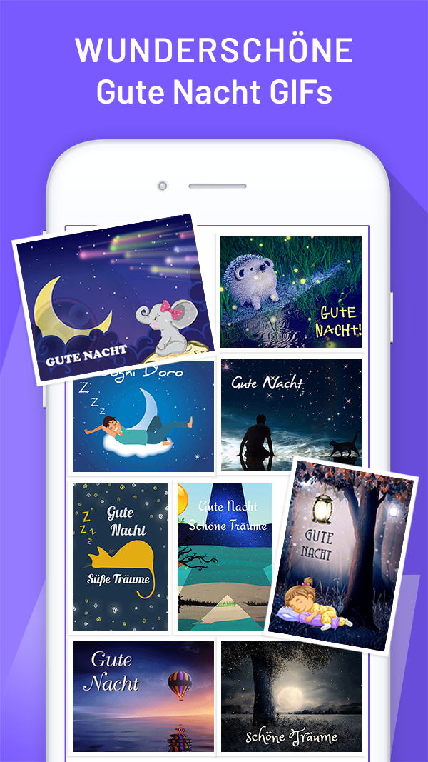 Gute Nacht Gif ist die beste Sammlung von Gute Nacht animierte Gifs. Jedes Gif hat süße Animationen, schöne Bilder und Sprüche. Jetzt unterstützt die App in 8 Sprachen: Englisch, Spanisch, Portugiesisch, Deutsch, Italienisch, Französisch, Malaiisch und Russisch. Neue Gifs werden regelmäßig hinzugefügt. Lasst uns gute nacht grüße an eure Lieben senden, damit sie sich glücklich fühlen und süße Träume haben! *** Haupteigenschaften *** ★ Die App hat Hunderte von fantastischen animierten Gute Nacht Gif, Bilder und Sprüche: - Gute Nacht mein schatz: romantische Liebe Gif mit gute Nacht Sprüche zu Ihrer Liebe und Schatz. - Gute Nacht grüße: süsses Gif, um Ihren Freunden und Lieben eine friedliche Nacht und süße Träume zu wünschen. Sie werden wunderschöne Bilder von Mond, Sternen und lieblichen Charakteren in der Traumwelt finden. ★ Teilen Sie Gute Nacht Gif zu Facebook, WhatsApp und anderen sozialen Netzwerken. ★ Speichern Sie Gifs, animierte Bilder auf SD-Karte. ★ Hinzufügen von Gute Nacht Bilder zum Favoriten-Bereich. ★ Browsen Sie gute Nacht Bilder nach Liste oder sehen Sie schnell und bequem im Detail. ★ Ändern Sie die Kategorien schnell, indem Sie die Dropdown-Box in der oberen Ecke drücken, und wenden Sie sie sowohl in der Listen- als auch in der Detailansicht an. ★ Schöne Hintergrundmusik.