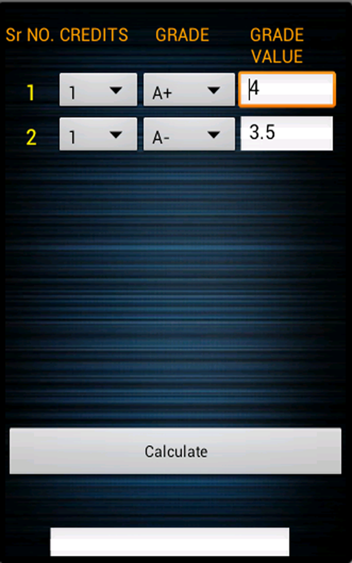 At the end of every semester, each university student needs to calculate his/her Grade Point Average (GPA). GPA Calculator does it for you. You can even add custom grade points for a variety of grades ranging from A+ to F. It can calculate the GPA for up to 8 courses at a time. It is a very dynamic application.