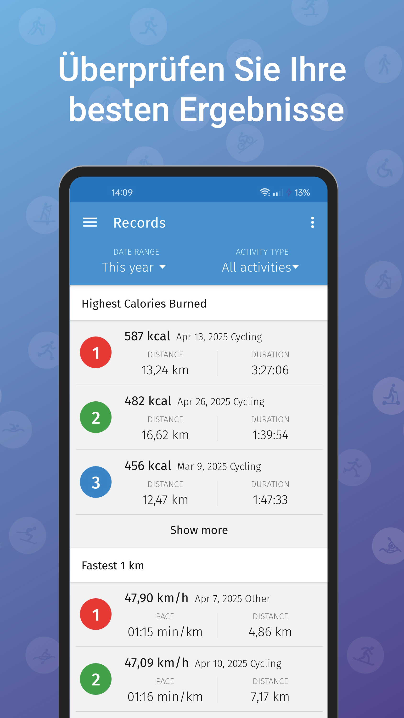 - Teilen – Teilen Sie Ihre Erfolge mit Freunden in sozialen Medien (Facebook, Instagram, X).