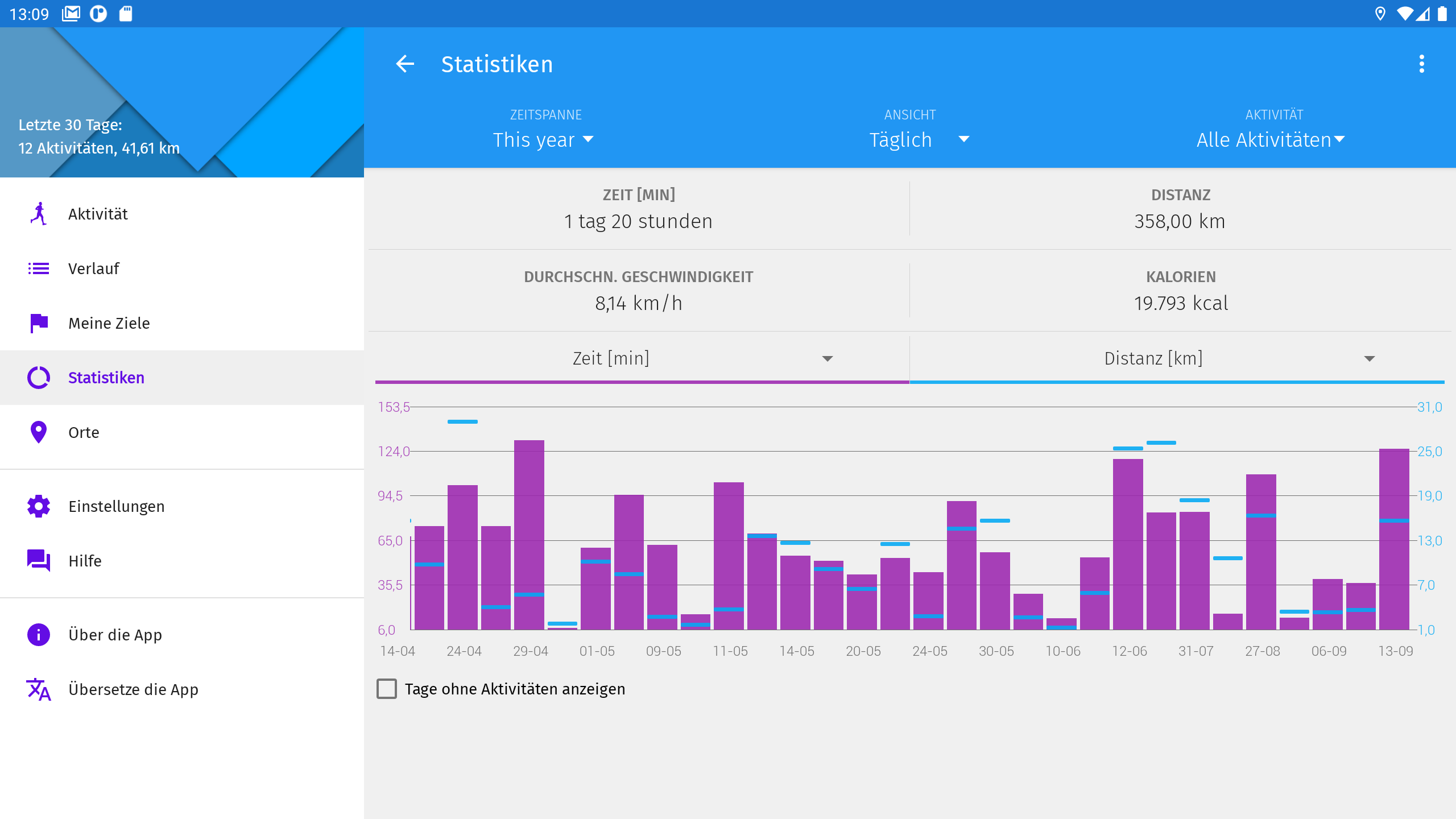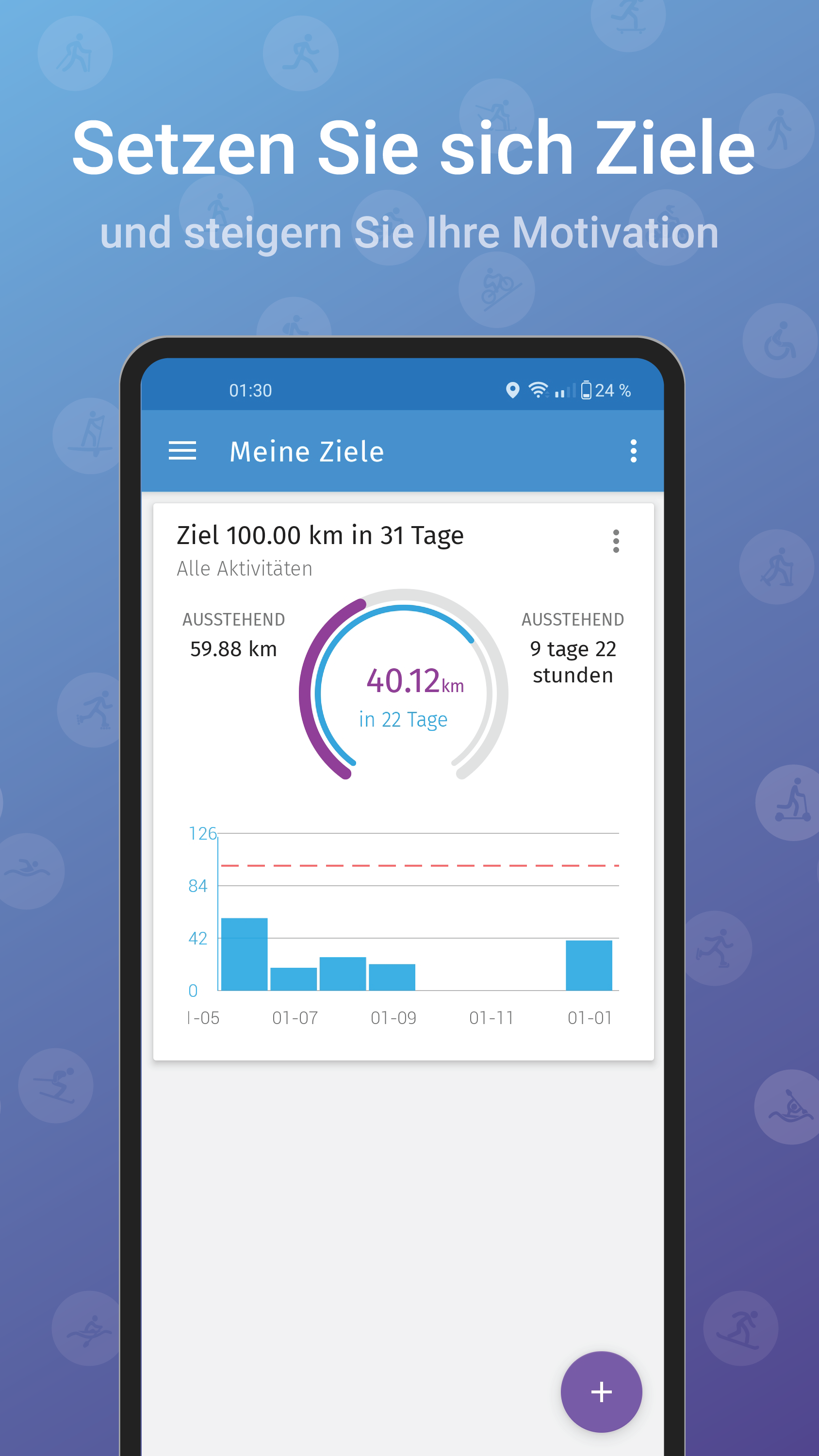 - Meine Ziele - Steigert die Motivation durch das Setzen von Zielen für Distanz, Zeit, Kalorien und die Anzahl der Aktivitäten, die wir wöchentlich, monatlich und jährlich erreichen möchten.