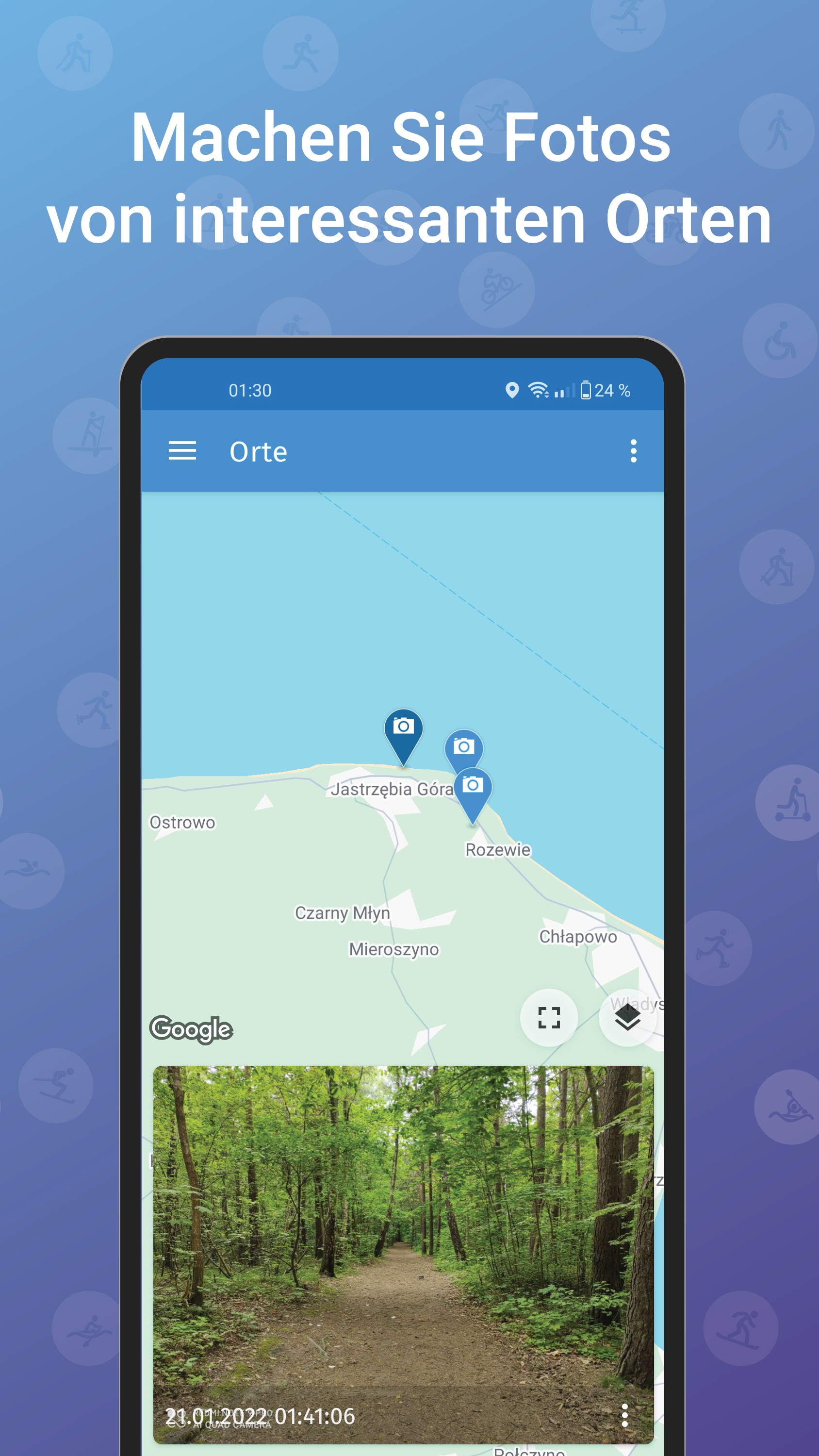 - Fotos auf der Karte – Machen Sie Fotos an interessanten Orten und sehen Sie sie sich auf der Karte an.