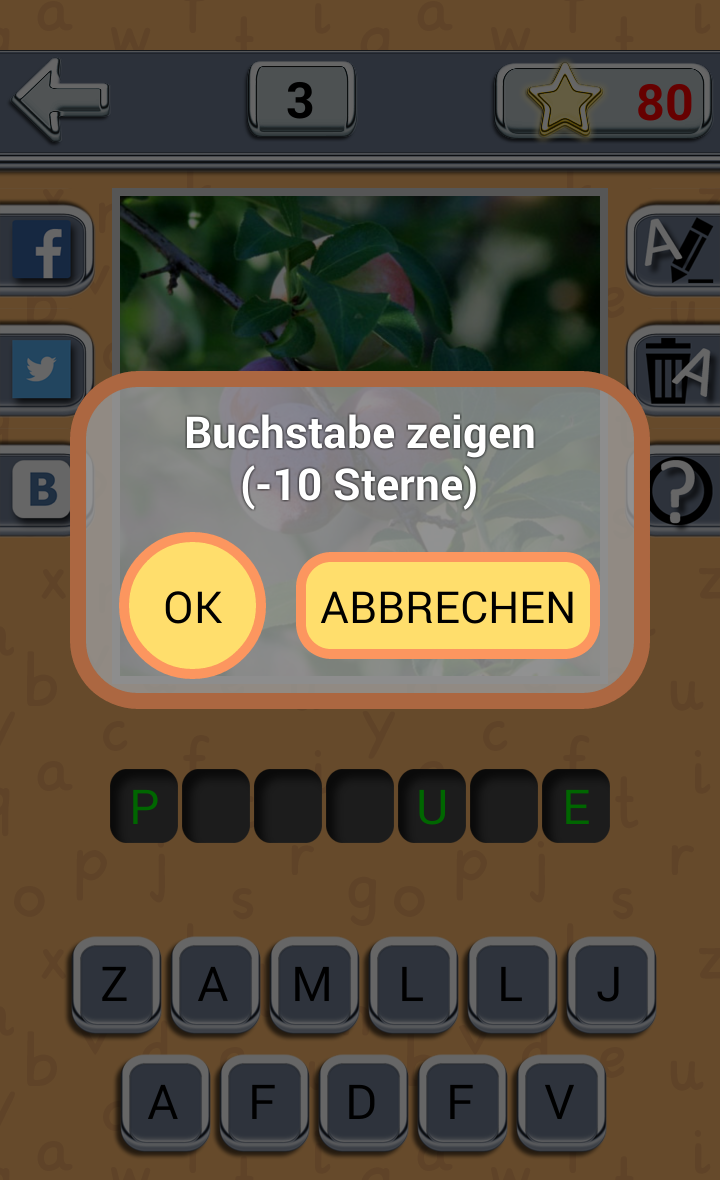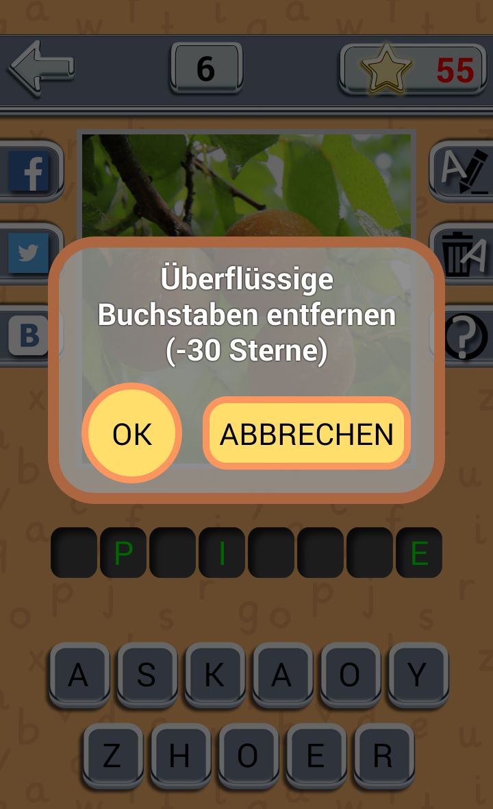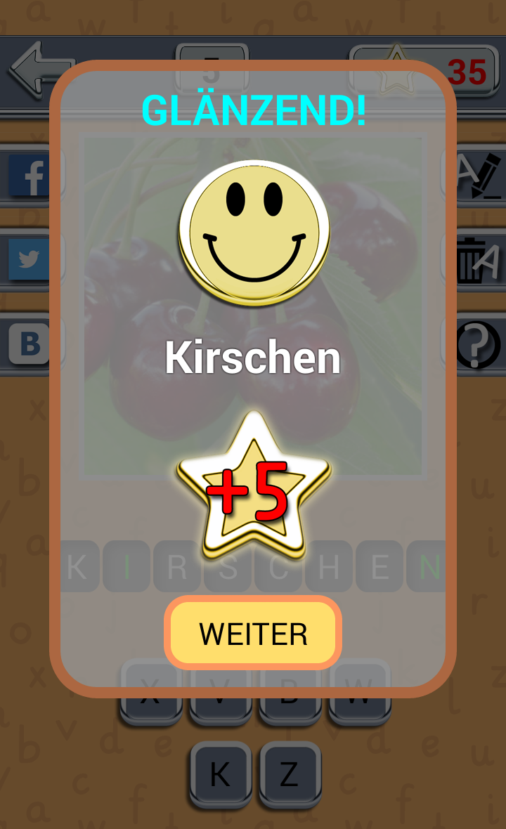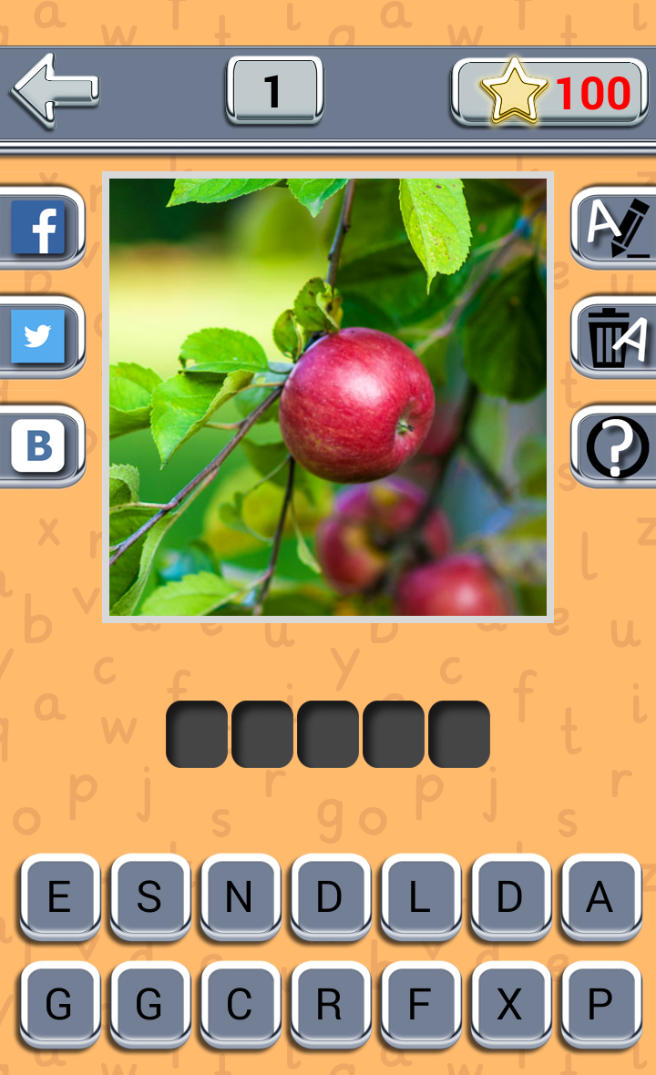 Wir bieten Ihnen ein Spiel zu spielen. Die Essenz des Spiels ist, zu erraten, Frucht oder Beere nach der vorgeschlagenen Bild. In die leere Zelle ziehen Sie die ausgewählten Buchstaben, wenn Sie sich geirrt haben - klicken Sie einfach darauf. Können wir einen Tipp: zeigen Sie einen Buchstaben oder entfernen, jede falsche. Indem er jeden Tag, erhalten Sie zusätzliche Sterne, die Sie später verwenden können als Hinweise. Spielen, ratet mal, verständig und teilen Sie in Bezug auf Ihre bevorzugten sozialen. Netzwerken. Unsere App Erraten: Frucht Beere interessante, informative und schön. Schöne Bilder von Beeren und Früchten warten auf Ihre Betrachter. Die Natur – unser Haus und die Harmonie mit Ihr sehr wichtig. Ihre Welt ist Grenzenlos und interessant, unser Spiel ist der Beweis dafür. Es schult das Gedächtnis, entwickeln logisches Denken und Intelligenz. Die App eignet sich nach Geschmack, sowohl für Erwachsene und Kinder. Es einzigartiges: laden Sie einmal und spielen unendlich sein kann, wobei, wo immer Sie wollen – zu Hause, in der Natur, im Verkehr. Spielen Sie mit der ganzen Familie, mit Freunden. Die Anwendung ist sehr bunt, so werden Sie nicht nur genießen Geselligkeit, tanken Sie neue positive Emotionen, aber auch einen ästhetischen Genuss von den schönen Bildern. Es ist völlig kostenlos. Um die Schönheit der Natur genießen, um das Gehirn zu trainieren und guter Laune zu tanken, muss nicht weit Reisen, müssen Sie nur laden Sie unser Puzzle-Spiel Erraten Sie die Frucht Beere und Sie wird seine Wunder vor Ihnen. DAS SPIEL ENTHÄLT WERBUNG! Alle Fotos im Spiel stammen unter Lizenz: CC0 Public Domain https://creativecommons.org/publicdomain/zero/1.0/deed