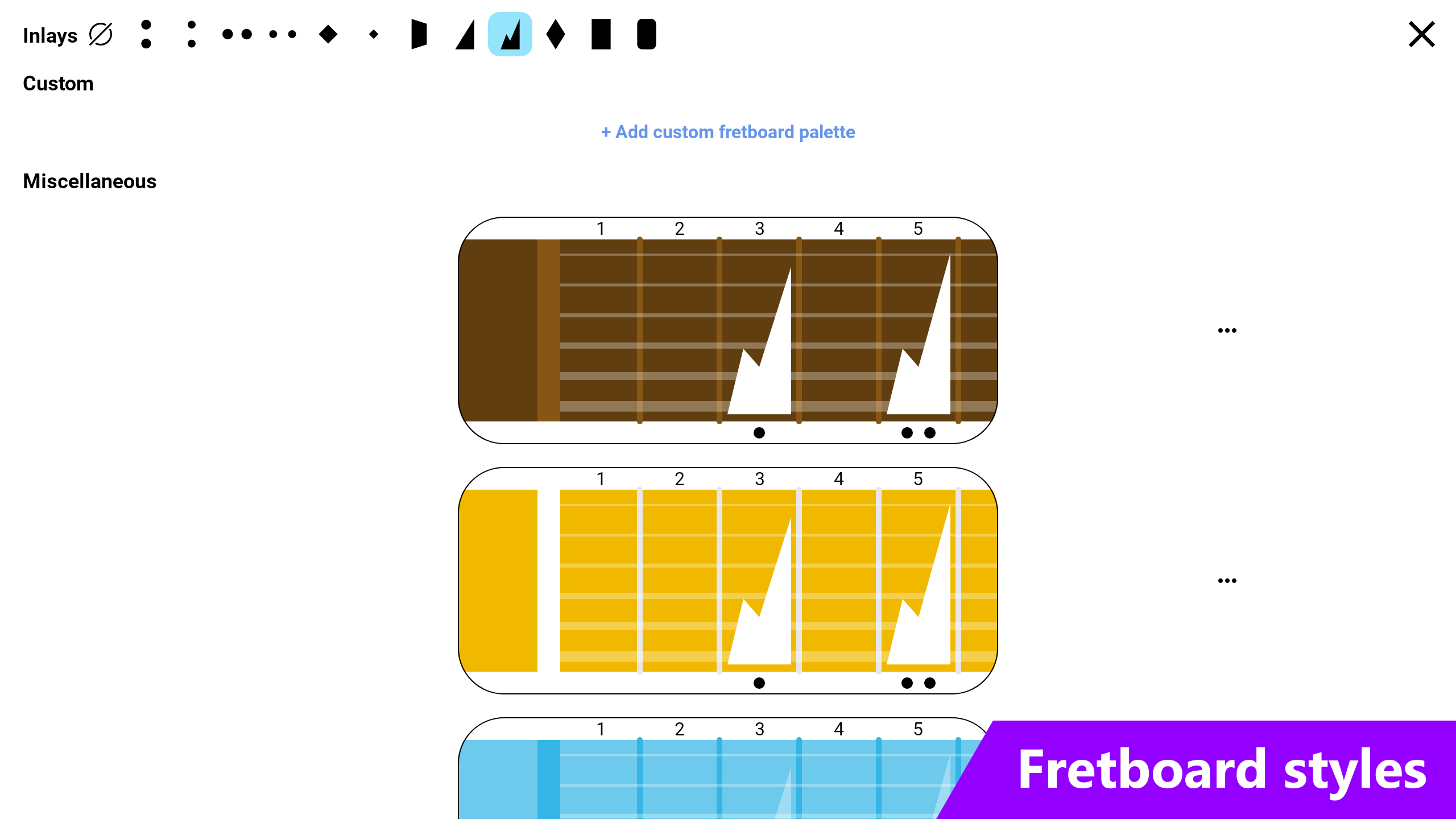- Ermöglicht das Ändern des Griffbrettstils und das Hinzufügen benutzerdefinierter Stile