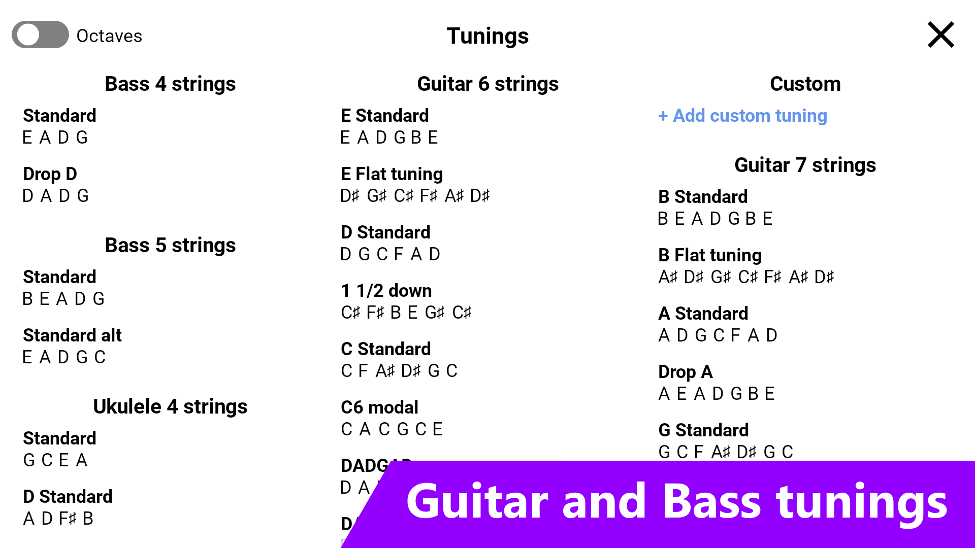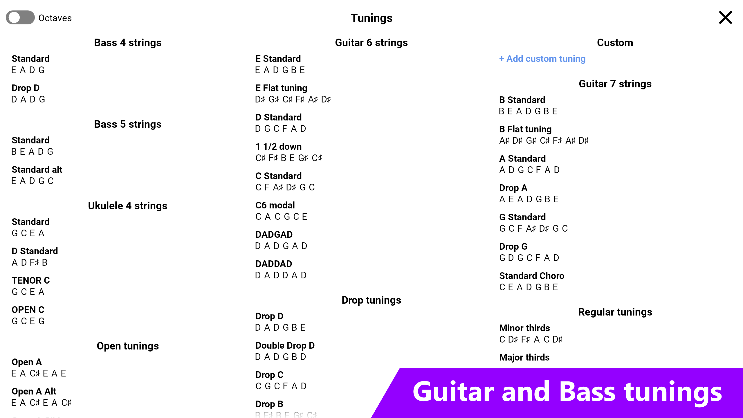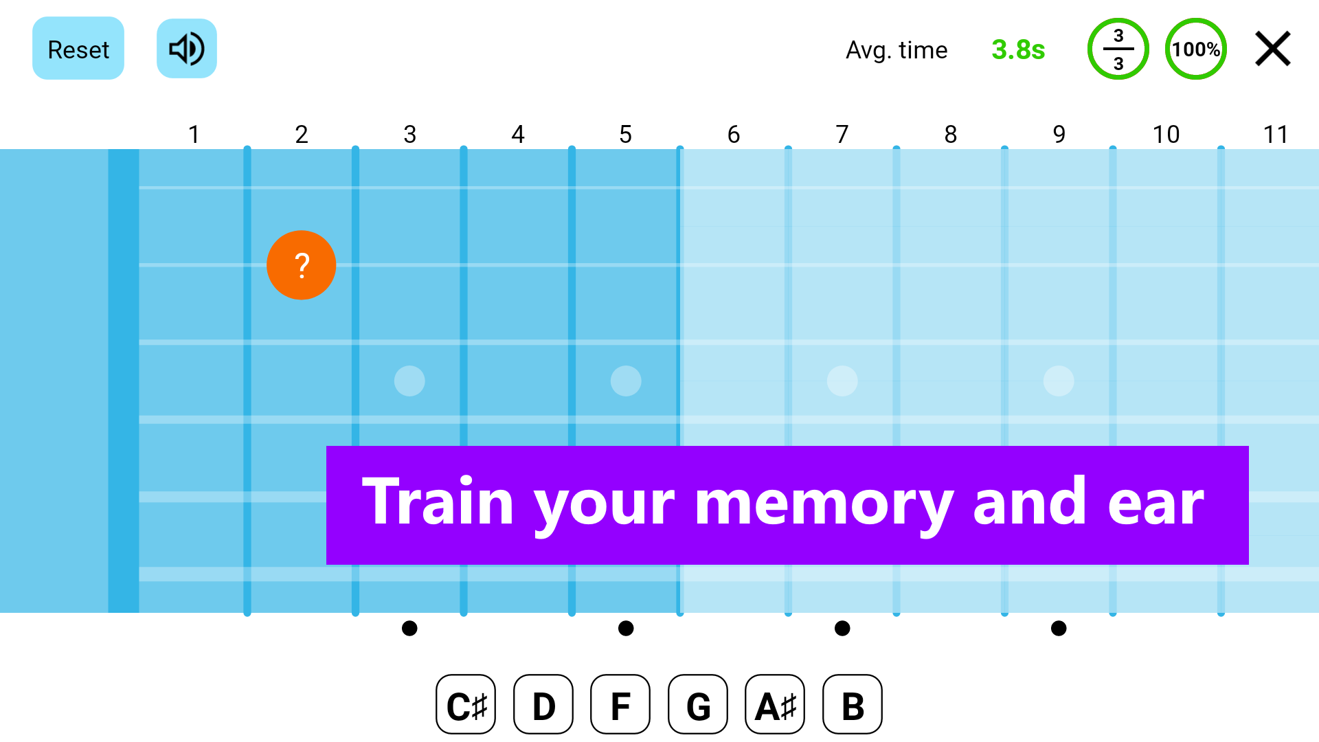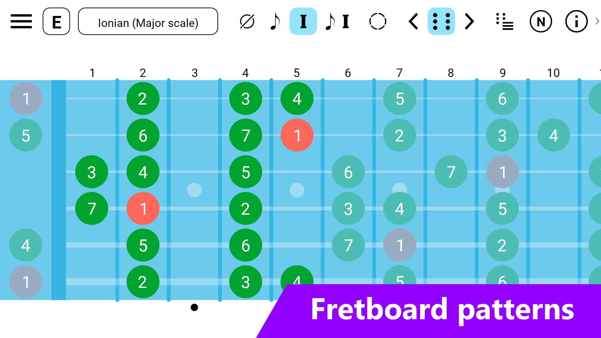 Die App ist mehr auf das Erlernen von Tonleitern als auf das Erlernen von Akkorden ausgerichtet, es sind jedoch auch Akkorde vorhanden und verfügen über Akkordformen für Hauptakkorde für 6/7-saitige Gitarre, 4/5-saitiger Bass und Ukulele.