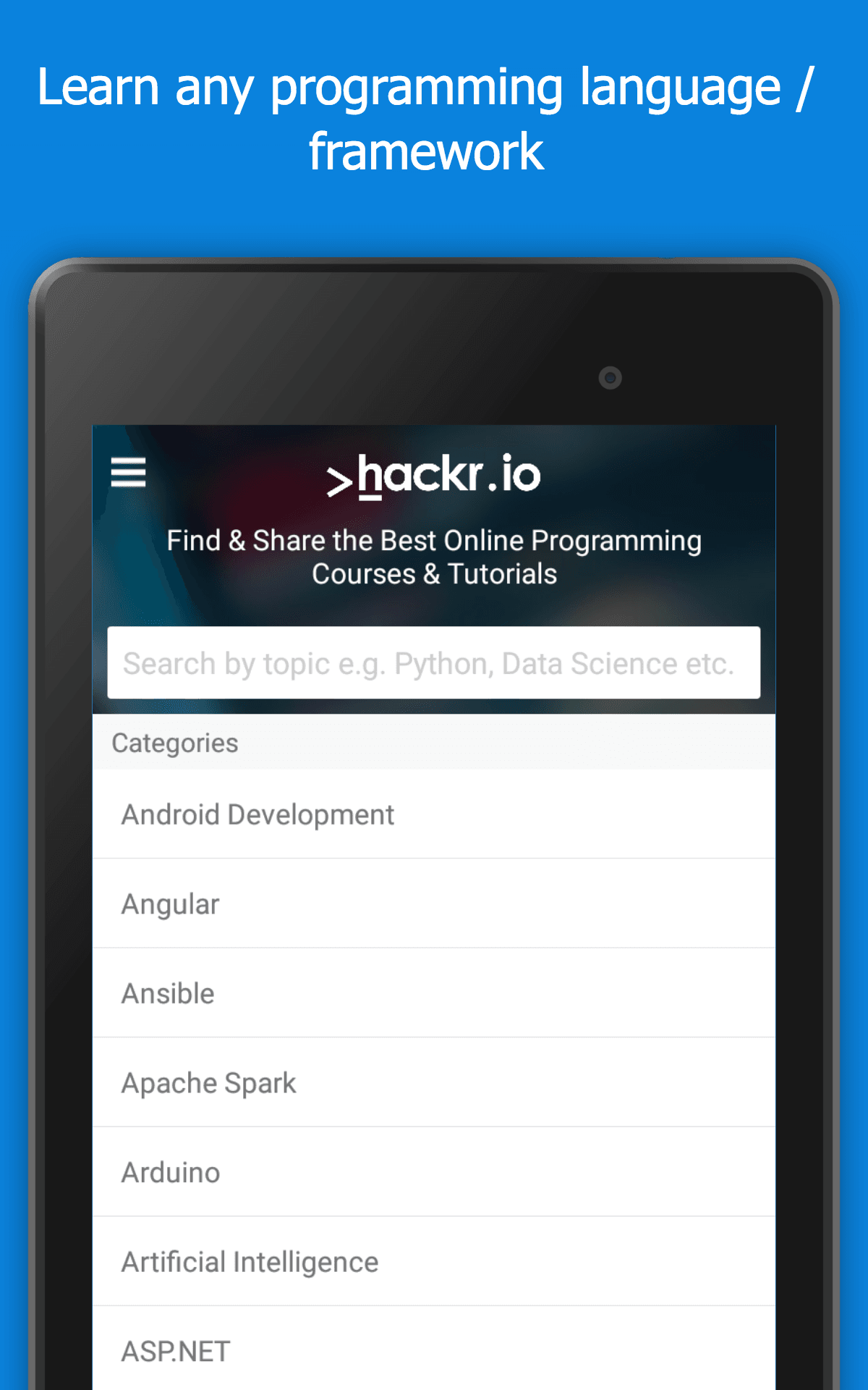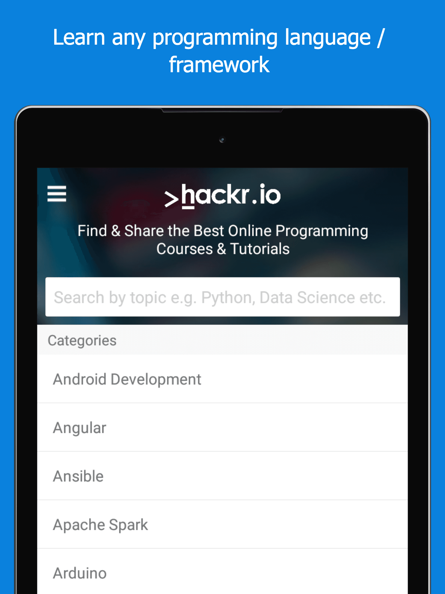 Hackr.io ist eine Liste von Online-Kursen und Tutorials. Wir fassen Kurse von vielen Anbietern zusammen, um es einfach zu machen, die besten Kurse zu fast jedem Thema zu finden, wo immer sie im Internet verfügbar sind. Alle Tutorials werden von der Entwickler-Community eingereicht und bewertet. Lernen: - Python, Java, PHP, Golang oder C / C ++ - Bitcoin- und Blockchain-Technologien - Einführung in die Programmierung und Datenstrukturen und -algorithmen - JavaScript, Typescript, Vue.js, Meteor, Angular, React oder Node.js - Künstliche Intelligenz, maschinelles Lernen oder Data Science - Reagiere einheimisch, ionisch oder flatternd - Native iOS (Swift) oder Android App-Entwicklung - C # oder ASP.NET - DevOps: Docker, Ansible, Chef, Jenkins, Kubernetes, Puppet oder AWS - und Tonnen anderer Programmiersprachen, Frameworks, Bibliotheken usw.