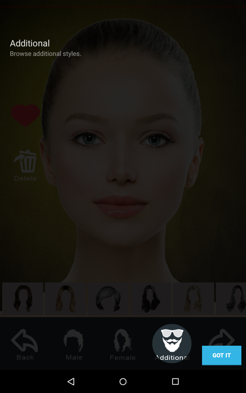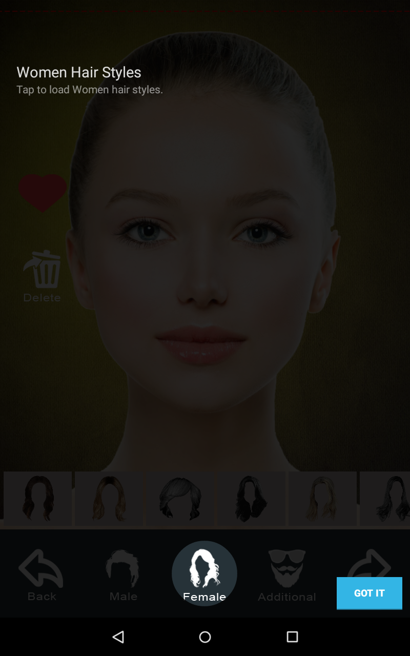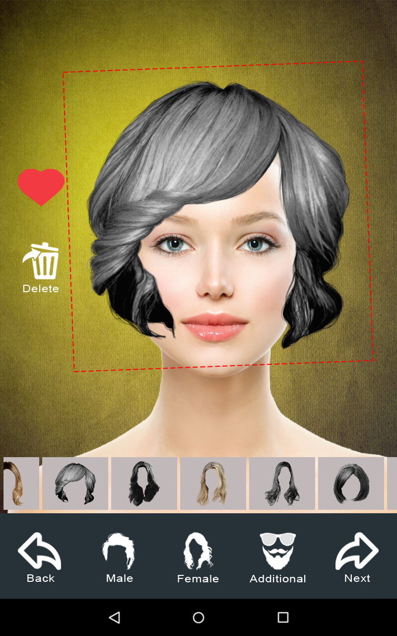 Hair style changer app enables you to check out what you would look like with different types of hairstyle makeover and hair colors on your photo. This app includes more than 50 cute hairstyles for girls and Latest boys hairstyles. The app gives you an idea about how to do a Woman hair style photo montage. This hair extension changer app or wigs changer app has an official video channel in the name of hairstylesapps.com on youtube which helps women and girls to make Hairstyles Step by Step. Apart from hairstyle changing this app also provide makeup items like Mustache, sunglasses, the beard so that Man can enjoy Hair and Mustache style like a pro. There are three sections inside app one section like girls hairstyle or woman hairstyle, boys hairstyle or man hairstyle and a new section called additional which has mustache, beard, sunglasses. Make a stunning photo manipulation by picking your favorite hair sticker! Enhance your photo montage with super cute photo effects and gorgeous filters like sepia, vintage, grunge, etc. This app offers the excellent collection of best free hair stickers and Deco stamps that you can use to embellish photos. Watch how your face gets an entirely new look by adding different hair color, blonde highlights or fresh haircut. Key features :- * Collection of beautiful hair and mustache / Beard styles. * All hair / mustache / beard styles designed to fit to any face. * Different styles Male, Female, Short, Medium, Long,hair cut, Beards and Mustaches. * Cut the hairstyle by touching parts you don’t want. * Allow to erase unwanted portion. * Unique flip option to properly fit hair style into your face. * 30 cool hair and mustache colors like blonde, brunette, red , brown , gray , blowout burgundy chocolate cherry , golden brown etc. *30+ image effects. * Easy rotation and zoom . * It let you share your beautiful hair style with your friends. Supports multiple social media sharing. How to use :- 1.Select your photo from gallery or capture from camera. 2. Choose your hair / mustache / beard / sun glasses style. 3. Scale and rotate to fit hair / mustache / beard / goggles style to your face( both with slider bar and fingers). 4.Add color to hair and mustache / beard. Now you can add color to goggles also. 4. Erase unwanted portion from your photo. 5. Flip left and right. 6. Apply effects to the final output. 6. Share your photo with Facebook, Instagram etc to your friend , family and hair stylist. 7. Save your creativity to gallery. 8. Set image to wallpaper.