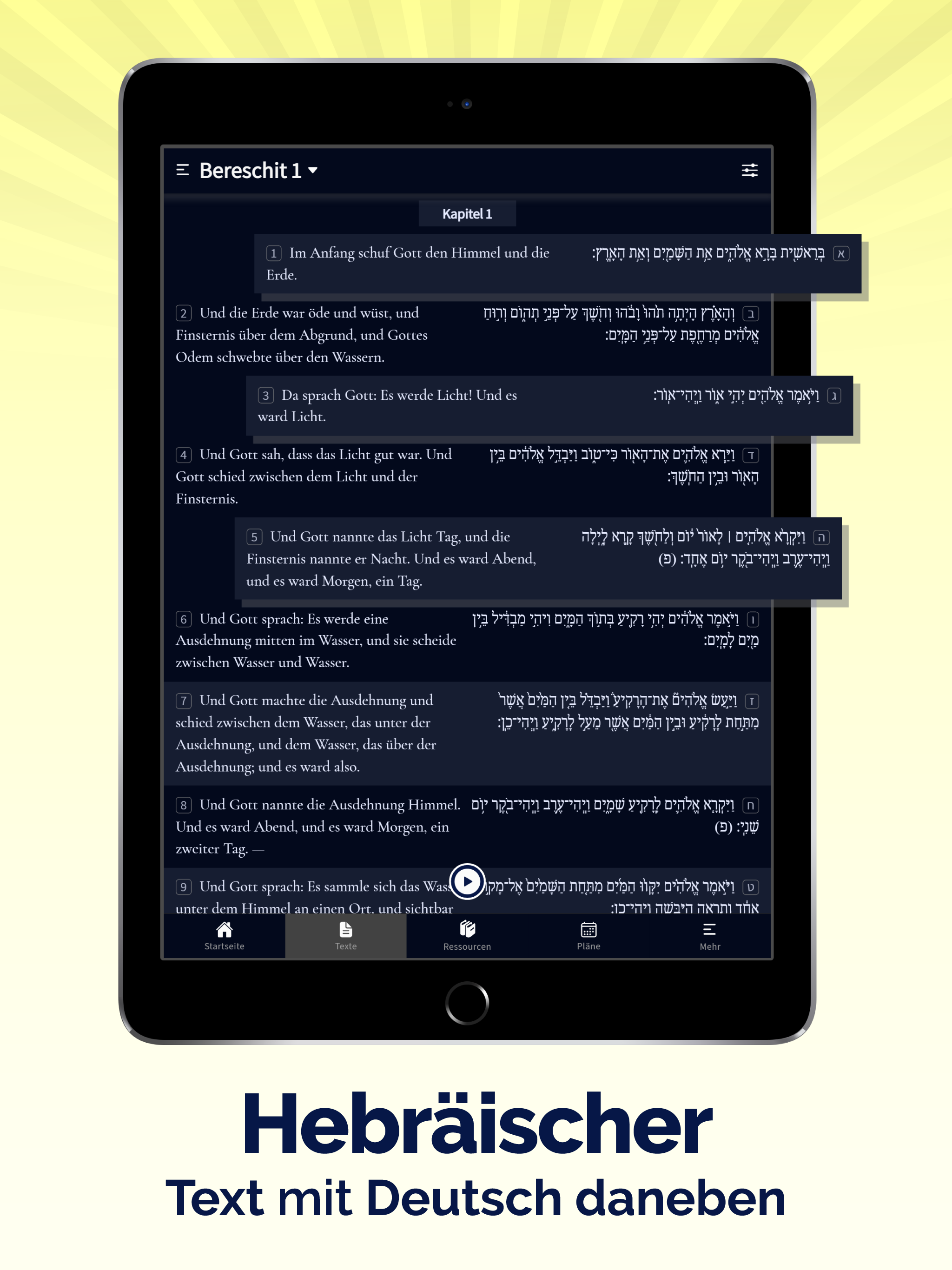 Hebräische Bibel Studium Übersetzung - Die #1 App für authentisches jüdisches Bibelstudium mit Rabbi Ari AI Chatbot. Studieren Sie die vollständige jüdische Bibel mit hebräischem Wörterbuch / Bibelwörterbuch für tägliche Gebete & Segen oder Recherche spezifischer Verse. Beste Alternative zu christlichen Bibel-Apps für jüdische Perspektiven.