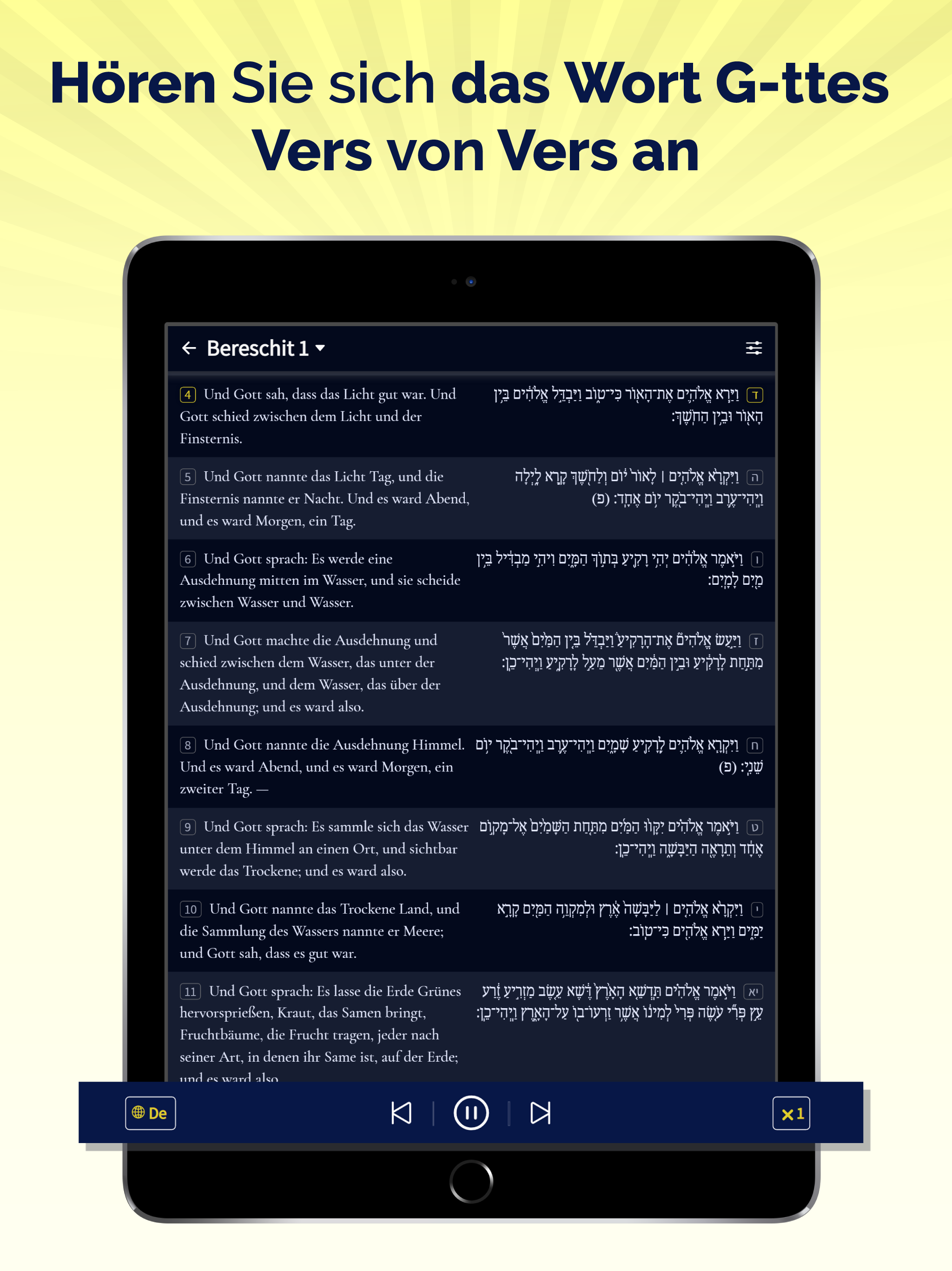 Einzigartiger Blue Player (Audio) - wechseln Sie zwischen hebräischem/englischem Audio & steuern Sie Abspielgeschwindigkeit