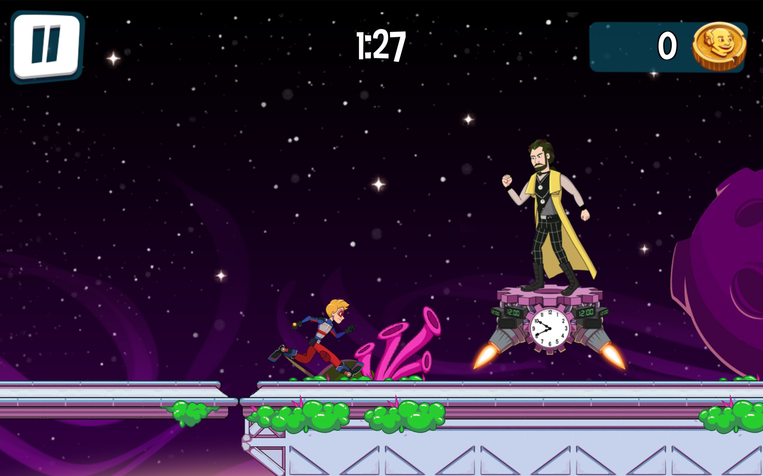 Die Zeit Jerker und seine bösen Verbündeten haben durch die Zeit entkommen. Sammeln Sie verrückt Prägung, wie Sie gleiten, springen, tauchen und Punsch Riese Popcorn Monster, in dieser Non-Stop-dash sie zu stoppen!