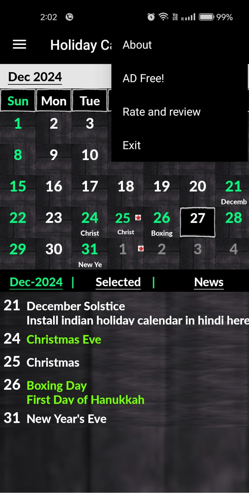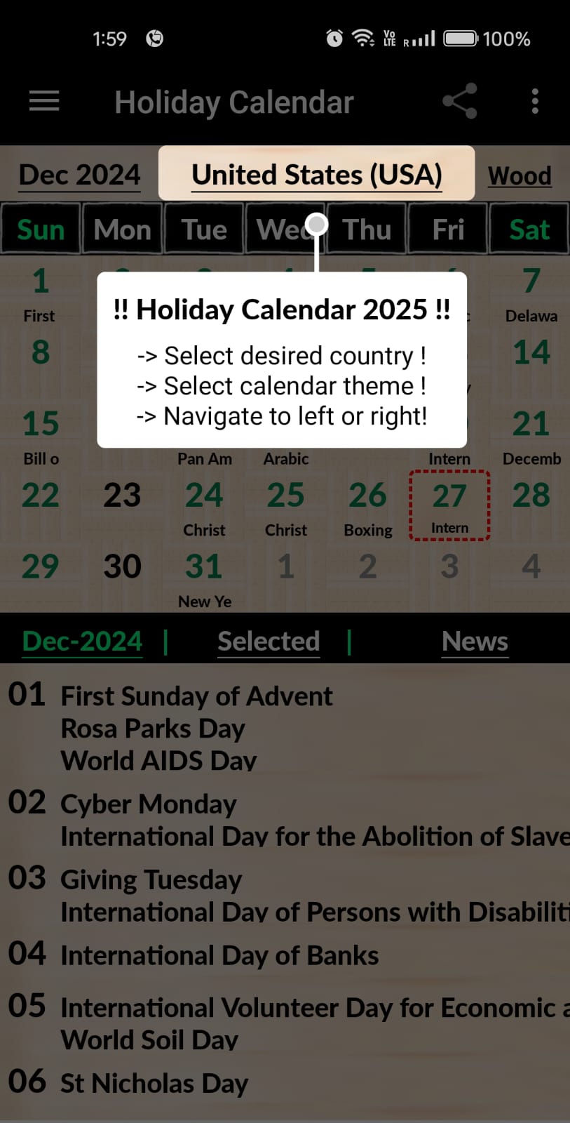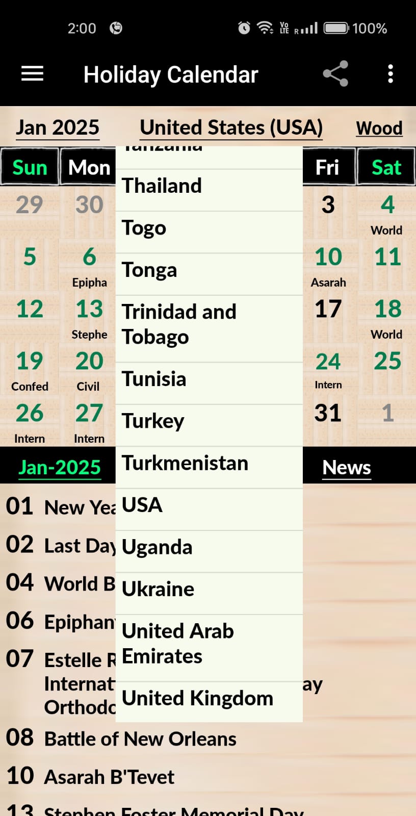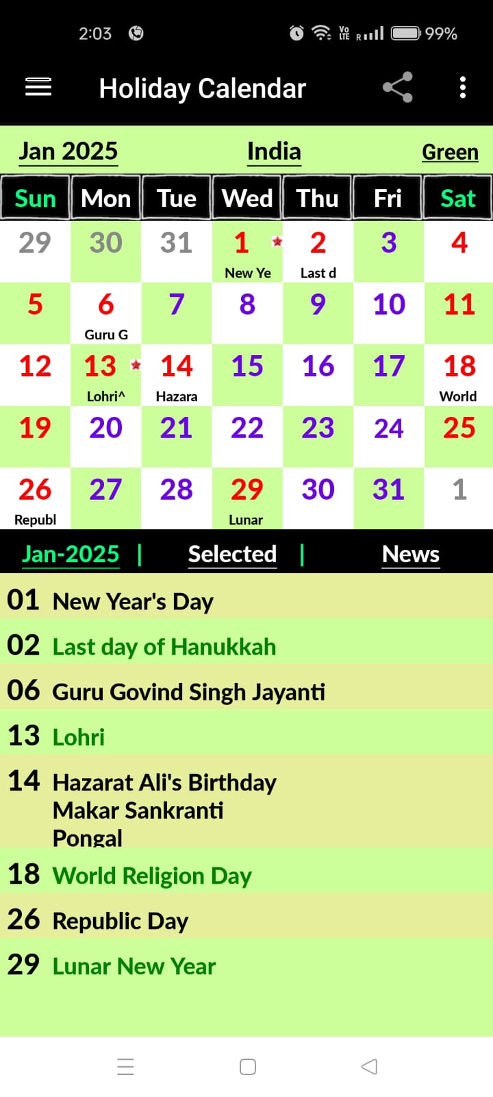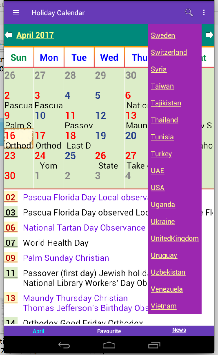 🌟 Feiertagskalender 2026 – Ihr ultimativer globaler Urlaubsplaner 🌟 Planen Sie Ihr Jahr ganz einfach mit der Feiertagskalender-App 2026! Diese App besticht durch ihr schlichtes und elegantes Design und bietet eine umfassende Liste von Feiertagen, Festen und Veranstaltungen weltweit. Bleiben Sie organisiert, verpassen Sie keine Feier und planen Sie Ihren Urlaub wie ein Profi! 🗓️ Warum der Feiertagskalender 2026? 🌍 Weltweite Abdeckung: Sehen Sie Feiertage aus über 20 Ländern, darunter die USA, Indien, Malaysia, Großbritannien, Kanada, Russland, die Philippinen, China, Südafrika, die Vereinigten Arabischen Emirate, Singapur und viele mehr! 🎉 Umfassende Listen: Enthält nationale, religiöse, Schul- und Bankfeiertage – perfekt für alle. 🔔 Intelligente Benachrichtigungen: Erhalten Sie Erinnerungen für wichtige Feiertage und Feste, damit Sie kein Ereignis verpassen. ✨ Hauptfunktionen ✅ Feiertage nach Land: Wählen Sie Ihr Land aus, und die App zeigt Ihnen die Feiertage für 2026 an. Ihr ausgewähltes Land wird automatisch als Standard festgelegt. ✅ Benutzerdefinierte Ereignisse & Erinnerungen: Fügen Sie persönliche Feiertage, Feste oder besondere Anlässe mit individuellen Erinnerungen hinzu. ✅ Feiertagsbeschreibungen: Erfahren Sie mehr über die Bedeutung jedes Feiertags. ✅ Intuitive Navigation: Wischen Sie oder nutzen Sie die Navigationssymbole, um schnell durch die Feiertage nach Monat zu blättern. ✅ Widget-Unterstützung: Fügen Sie ein Widget zu Ihrem Startbildschirm hinzu, um anstehende Feiertage und einen Schnellzugriff auf die App anzuzeigen. ✅ Urlaubsplanung: Planen Sie Ihren Urlaub oder Anlässe zum Schenken mit dem Feiertagskalender. ✅ Offline-Zugriff: Greifen Sie jederzeit auf Feiertagsinformationen zu, auch ohne Internetverbindung. 🎉 Neue Updates & Verbesserungen ✨ Erweiterte Feiertagslisten mit präzisen und aktuellen Informationen. ✨ Verbesserte App-Performance für flüssiges Surfen. ✨ Optimiert für alle Android-Geräte, mit geringer App-Größe für schnelle Downloads. 📢 Perfekt für: Schüler und Eltern: Behalten Sie den Überblick über Schulferien. Berufstätige: Planen Sie Ihre Arbeit und Ihren Urlaub rund um Feiertage. Reisende: Sehen Sie Feiertage in verschiedenen Ländern und planen Sie Ihre Reise stressfrei. 📩 Feedback und Support Wir freuen uns über Ihr Feedback! Bei Anregungen oder Problemen kontaktieren Sie uns bitte direkt per E-Mail. Wir kümmern uns umgehend darum. 🔑 Schnellfunktionen: Feiertagskalender Weltweite Feiertagsliste Festivalkalender 2026 Hilfe bei der Urlaubsplanung Veranstaltungskalender 📲 Laden Sie den Feiertagskalender 2026 noch heute herunter und machen Sie jeden Feiertag, jedes Festival und jedes Event zu einem unvergesslichen Erlebnis! 🎉