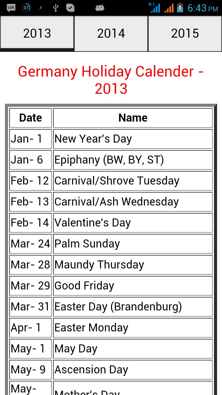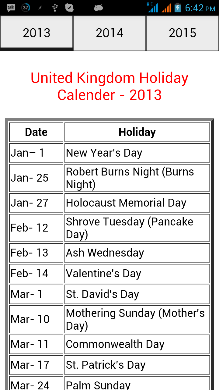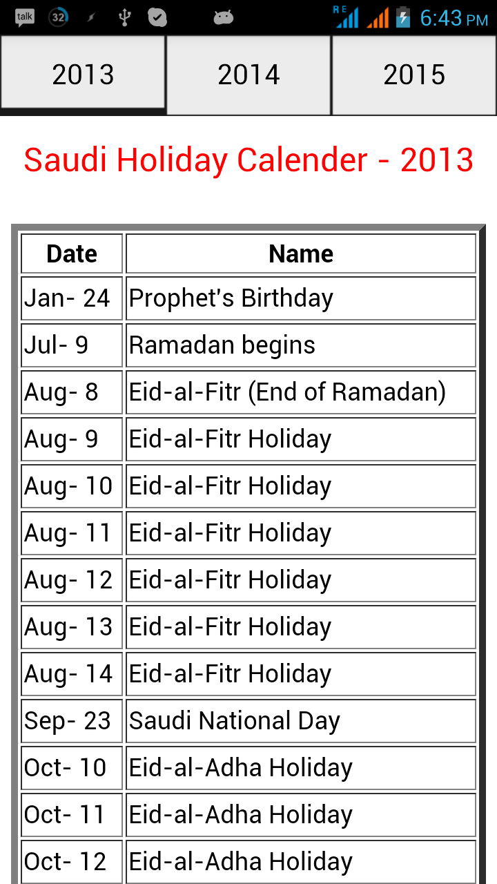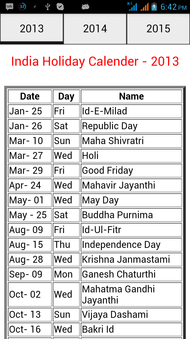Holiday's Calendar 2013 to 2015