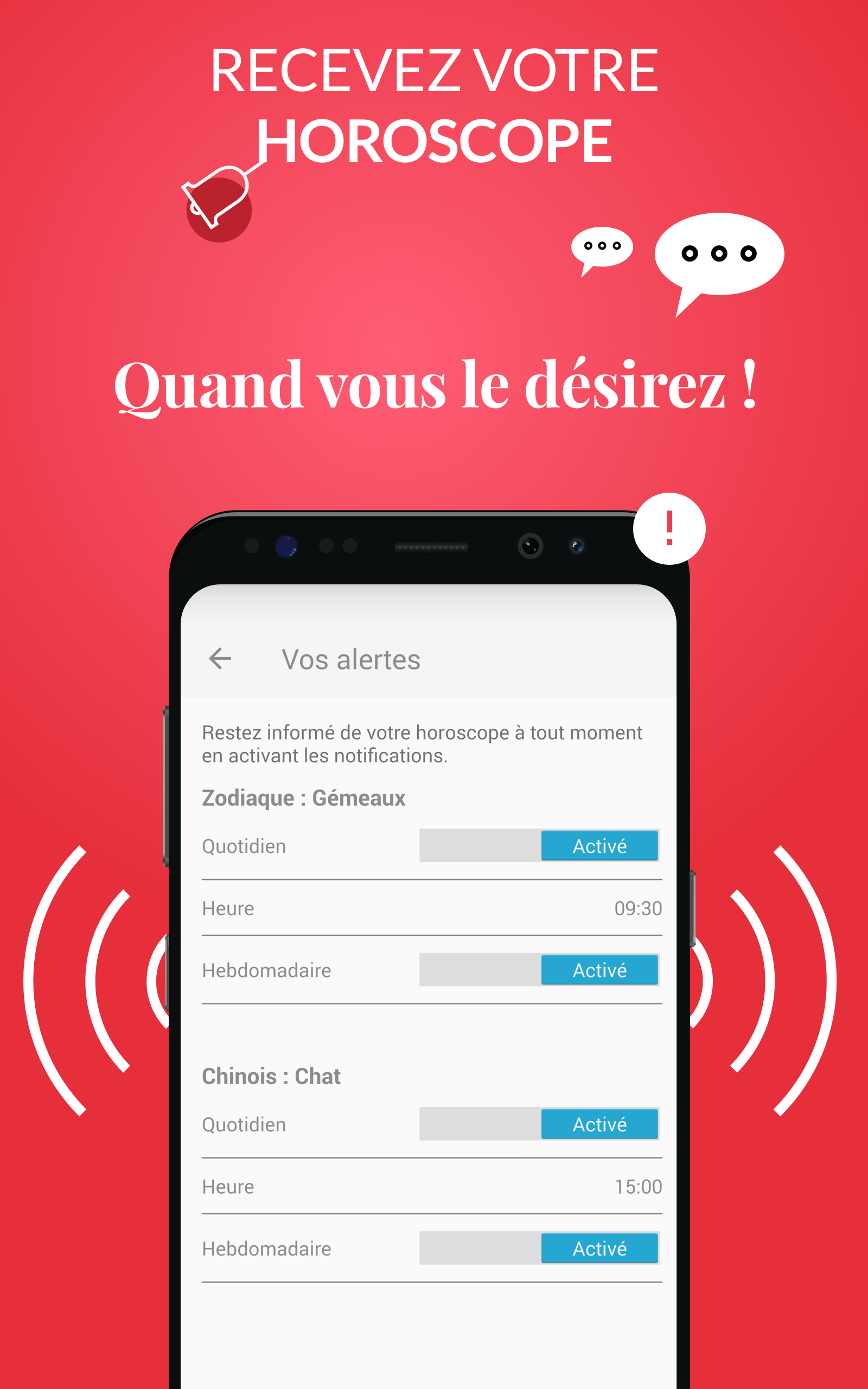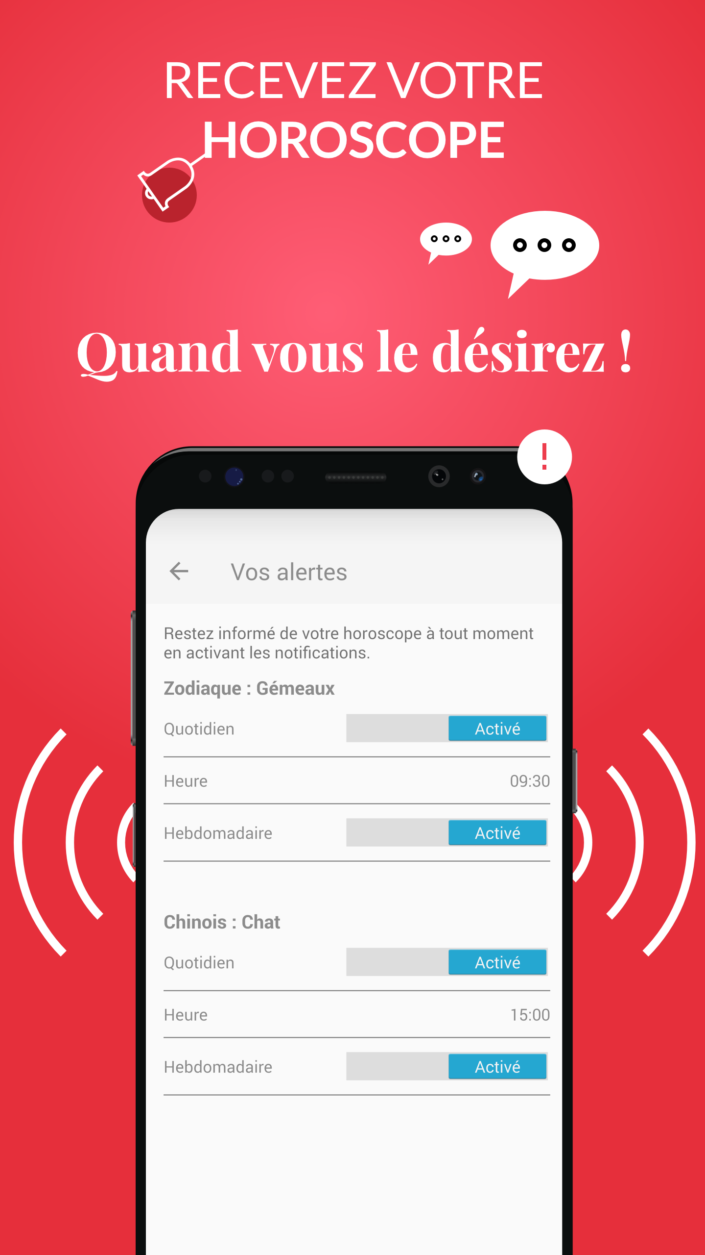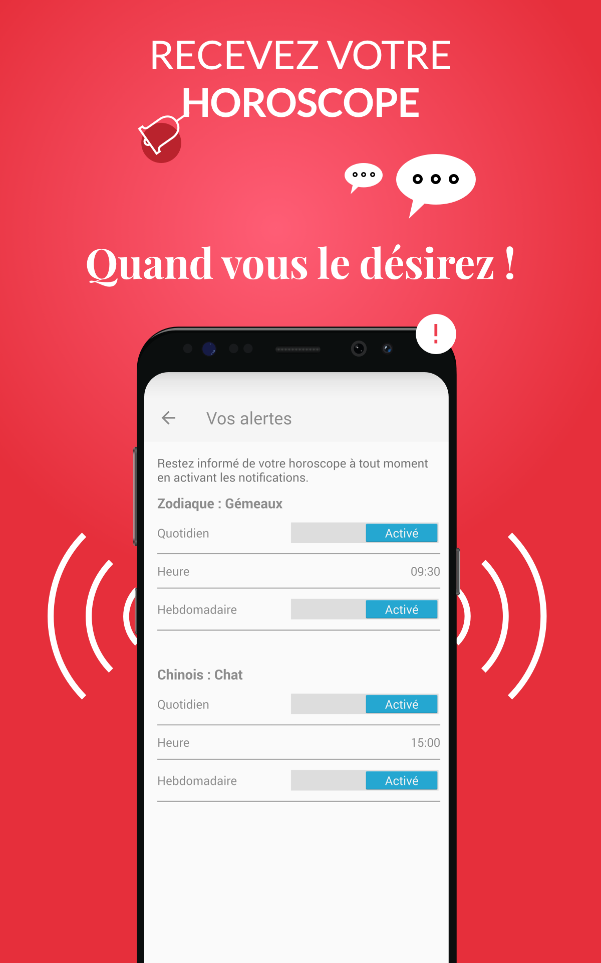 VOTRE CONSULTATION, VOTRE MOMENT : Consultez votre horoscope quand vous le désirez en recevant des notifications à l’heure que vous voulez.