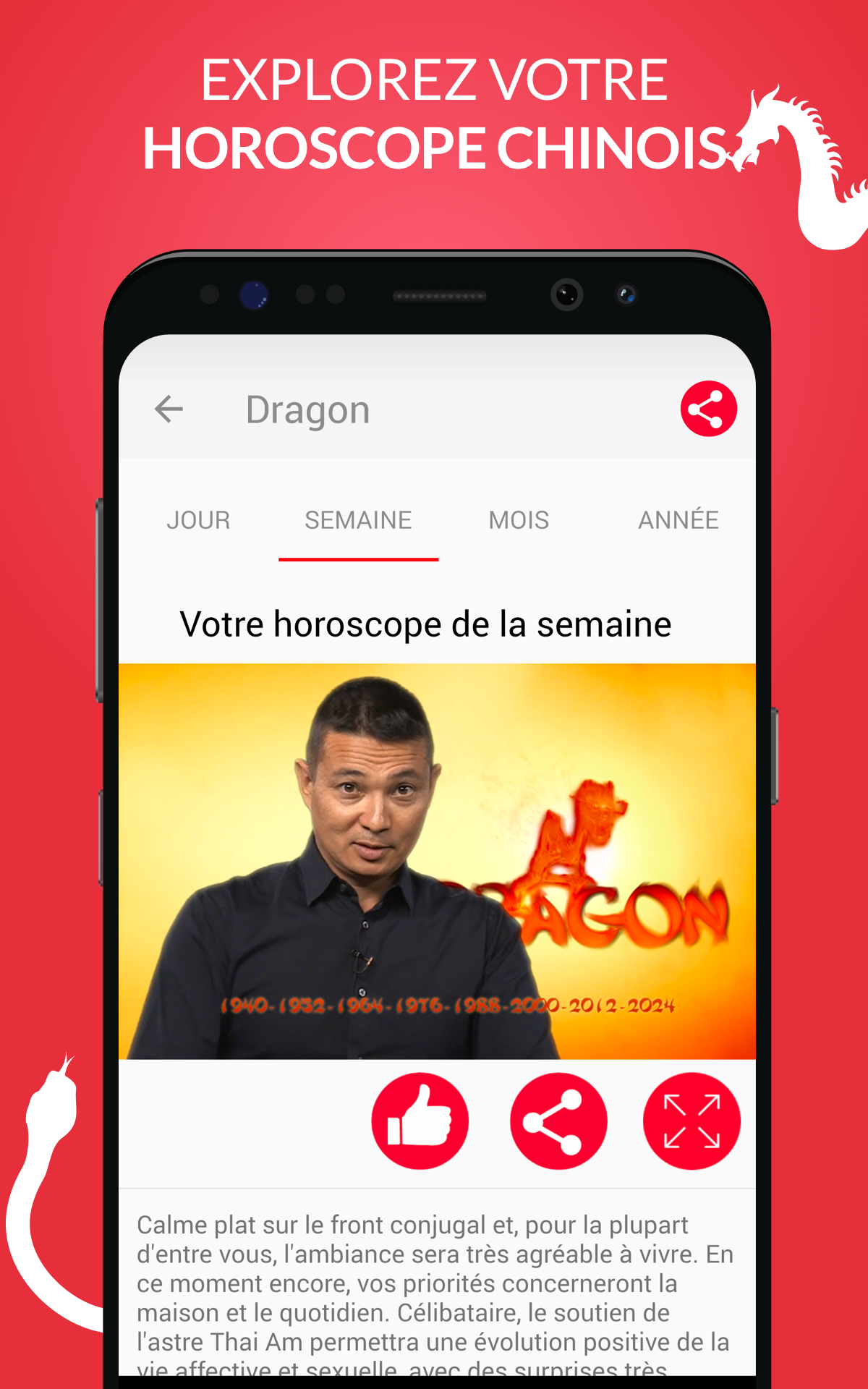 Femme ou homme, découvrez votre horoscope selon la période de temps que vous voulez: jour, semaine, mois, année, pour chaque signe du zodiaque et chaque signe chinois, sur les thèmes qui vous sont chers: amour, famille, argent, travail et vie sociale.
