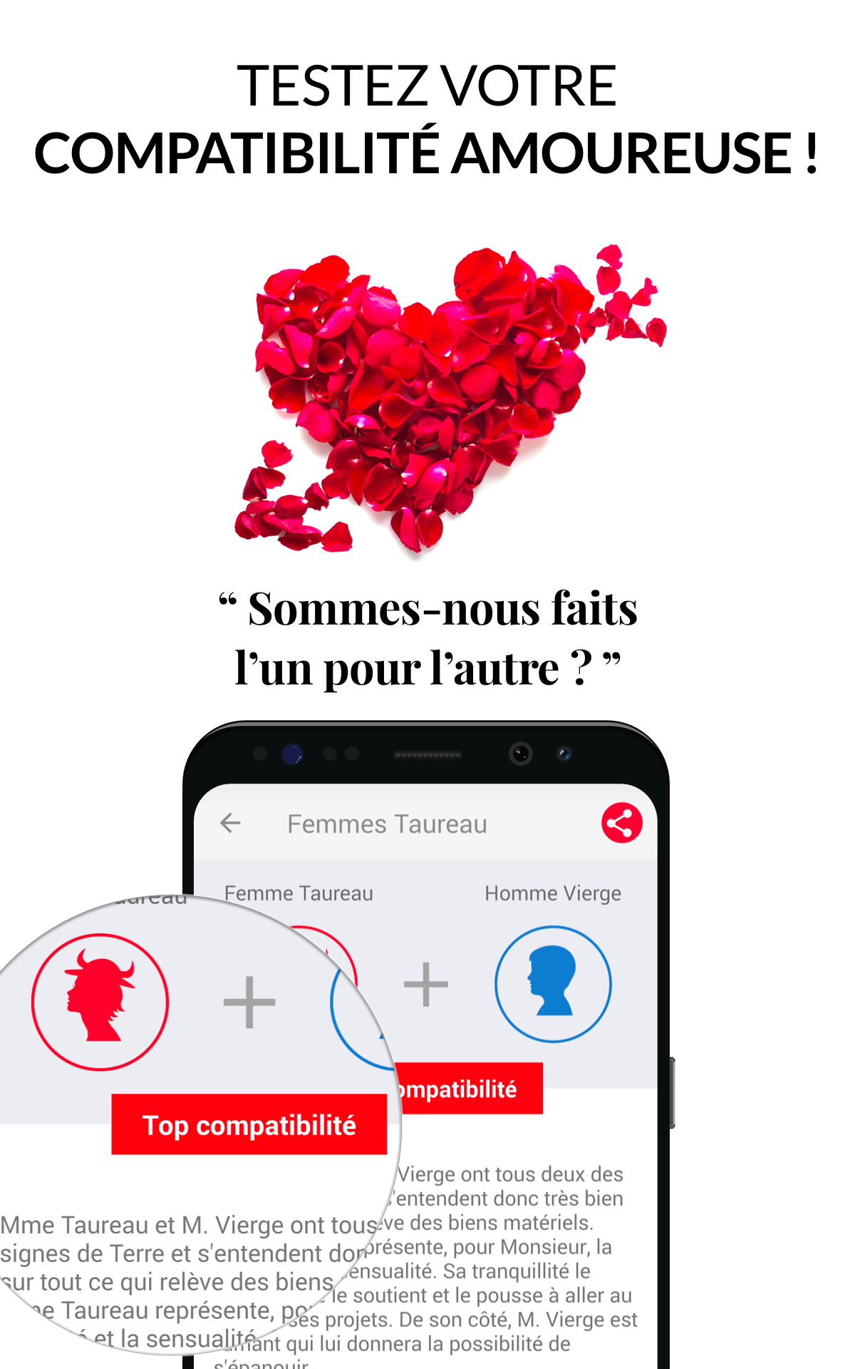 TESTEZ VOTRE COMPATIBILITÉ AMOUREUSE : Avez-vous tout pour vous entendre avec votre potentielle âme soeur ? Regardez toutes les compatibilités possibles d’un signe à l’autre, sans limite !