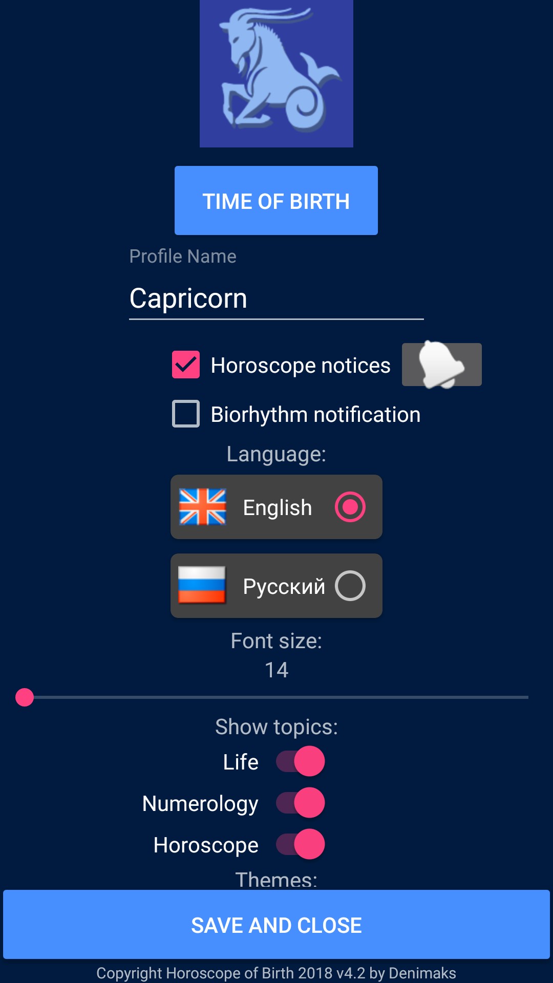 "Horoskop der Geburt" - eine einzigartige Anwendung, die Millionen von Benutzerherzen erobert hat und die keine Analoga hat! Es hat geholfen, die richtige Richtung im Leben zu bestimmen, und Zehntausende von positiven Kommentaren bestätigen dies. Warum Sie unsere Anwendung herunterladen müssen: - Über eine Million Downloads - Hoch bewertete positive Benutzerbewertungen - Kleine Anwendungsgröße mit einer sehr starken Fülle von Informationen für den Benutzer: Horoskop, Numerologie, Kompatibilität, Zitat des Tages, Biorhythmus und mehr - Tägliches Update mit genauen Informationen - Hilft Entscheidungen für den Tag zu treffen 📣 Eine 100% völlig KOSTENLOSE App, die individuell bestimmt, auf welche Zeit und welchen Aspekt des Lebens Sie achten müssen, wie Sie die Anziehungskraft für das andere Geschlecht steigern, Ihre Gesundheit erhalten, gute Beziehungen zu Familie und Freunden aufbauen, nur die richtige Entscheidung treffen jeden Tag. 🎂 Finden Sie heraus, wie viele Tage bis zu Ihrem Geburtstag verbleiben und wie viele Tage Ihres wunderbaren Lebens Sie bereits gelebt haben. 💕Liebeshoroskop - zeigt die wichtigsten Trends des Tages und hilft beim Aufbau von Beziehungen mit einem Partner. Es wird Ihnen auch erlauben, in die Zukunft zu blicken und die Handlung Ihrer Liebesgeschichte zu entwickeln. 💰Karrierehoroskop - wird Ihnen viele Geheimnisse über Berufsaussichten enthüllen, Sie werden in der Lage sein, Ihre Aktivitäten basierend auf für Sie erfolgreichen und gefährlichen Zeiten zu planen. Geld, Erfahrung und Wissen, berufliche Entwicklung und Beziehungen zu Kollegen, Kündigung oder die Androhung einer Geldstrafe ... Bauen Sie Ihre Zukunft selbst auf! 🍏 Gesundheitshoroskop - gibt die richtigen Empfehlungen, wie Sie Ihre Gesundheit am besten überwachen, worauf Sie zuerst achten müssen und wie Sie sich um sich selbst kümmern können. 💘Sie können auch die Kompatibilität Ihres Sternzeichens mit einem anderen überprüfen und eine Annäherung an einen Partner finden. 🔢Numerologie zeigt Ihre Zukunft und gibt einen Hinweis für eine wichtige Entscheidung. Es ermöglicht Ihnen, den Charakter, die Lebenserfahrung und das ultimative Ziel zu bestimmen. Ebenso gut wie: - Zur Information genügt nur ein Geburtsdatum - Große Auswahl an Horoskopen: Allgemein-, Liebes-, Karriere-, Gesundheitshoroskop - Biorhythmus-Widget mit Benachrichtigungen auf Ihrem Desktop - Schnelle, einfache und ansprechende Benutzeroberfläche/Design - Themen für jeden Geschmack - Anpassen der Anwendung für sich selbst - Erinnerung, das Horoskop zu lesen - Widget, das die verbleibende Zeit bis zum Geburtstag anzeigt + eine Schaltfläche, um zum Lesen des Horoskops zu gelangen Astro-Prognose für alle Sternzeichen: ♈ Widder ♉ Stier ♊ Zwillinge ♋ Krebs ♌ Löwe ♍ Jungfrau ♎ Waage ♏ Skorpion ♐ Schütze ♑ Steinbock ♒ Wassermann ♓ Fische